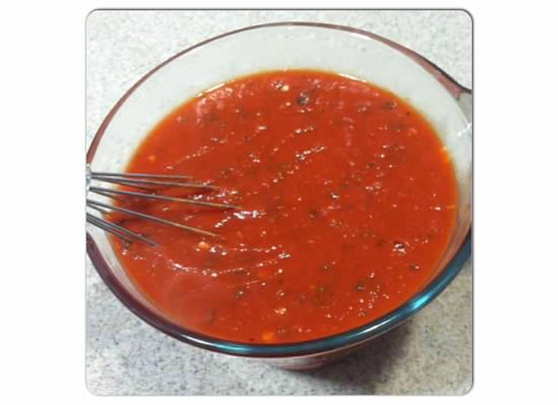 A pantry-staple pizza sauce ready in 25 minutes from start to finish. Leftovers are great for the freezer/kids mini pizzas