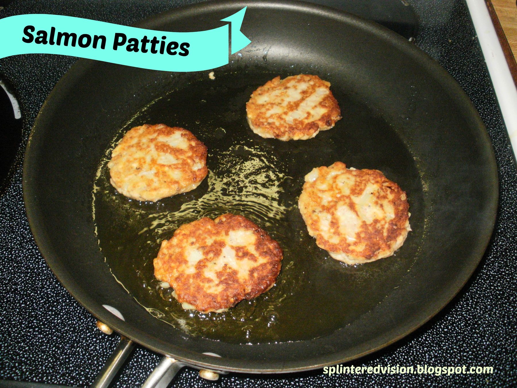 Salmon patties are quick and easy to make. On most hot days I don’t cook but I do get tired of sandwiches. On the weekend, when I have time to cook, I like to make least one dish. Salmon Patties only heat up the stove top and only for a short time. I hope you’ll give these a try.