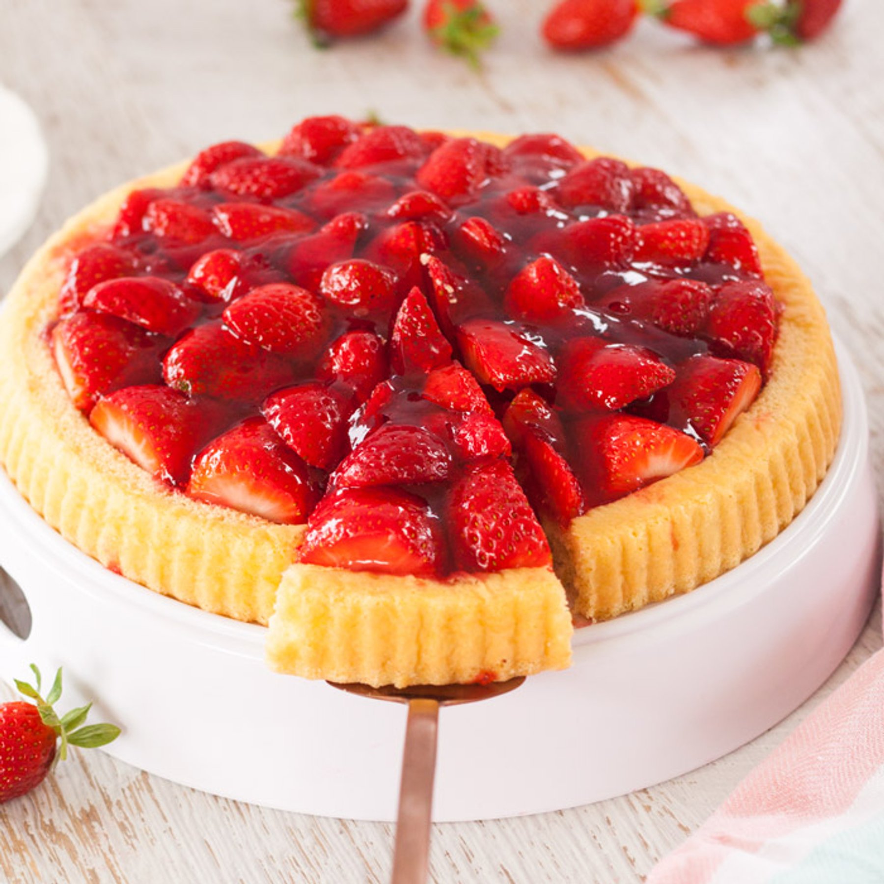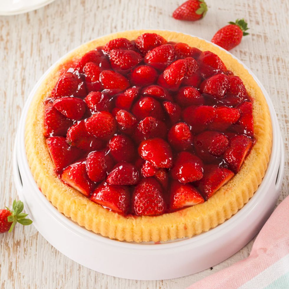 Super simple to make, from scratch, Strawberry Flan. This tart has a light, fluffy sponge base covered in fresh strawberries.