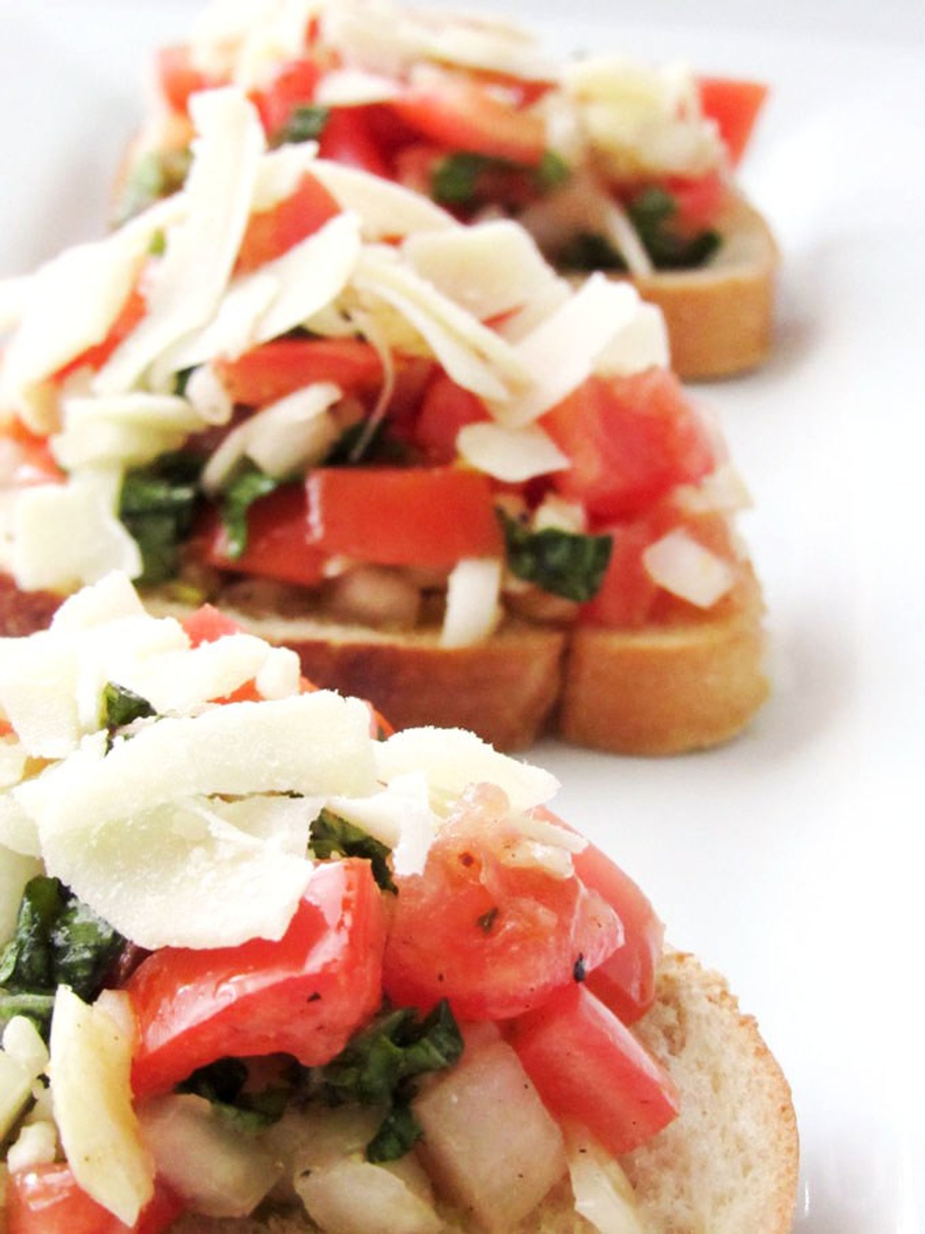 Fresh, simple, and rustic. The vibrant flavors of tomato, onion, garlic, basil, olive oil and Parmesan come together in this classic dish.