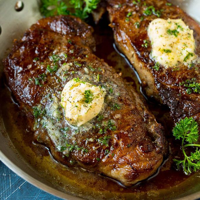 This sirloin steak is seared to golden brown perfection, then topped with garlic and herb butter. A simple, yet totally satisfying way to enjoy steak that's easy enough for an everyday meal, yet elegant enough for company.