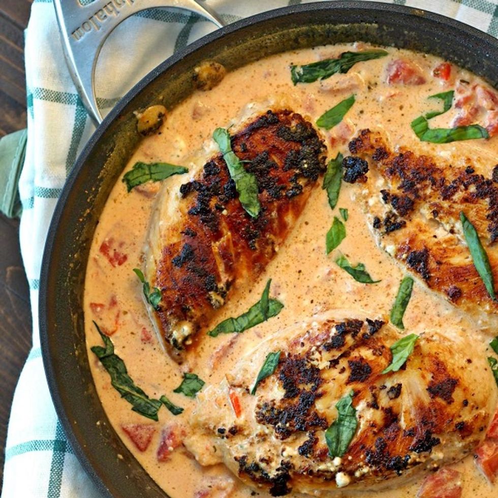 Skillet Basil Cream Chicken, the BEST comfort food made in under 30 minutes!