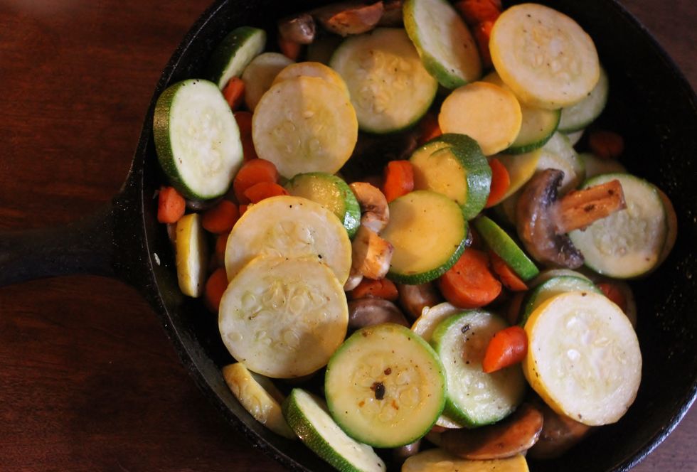 2. In a skillet, melt butter over medium heat. Add carrots and cook for 2-3 minutes. Add summer squash and mushrooms and saute until cooked. Covering expedites...