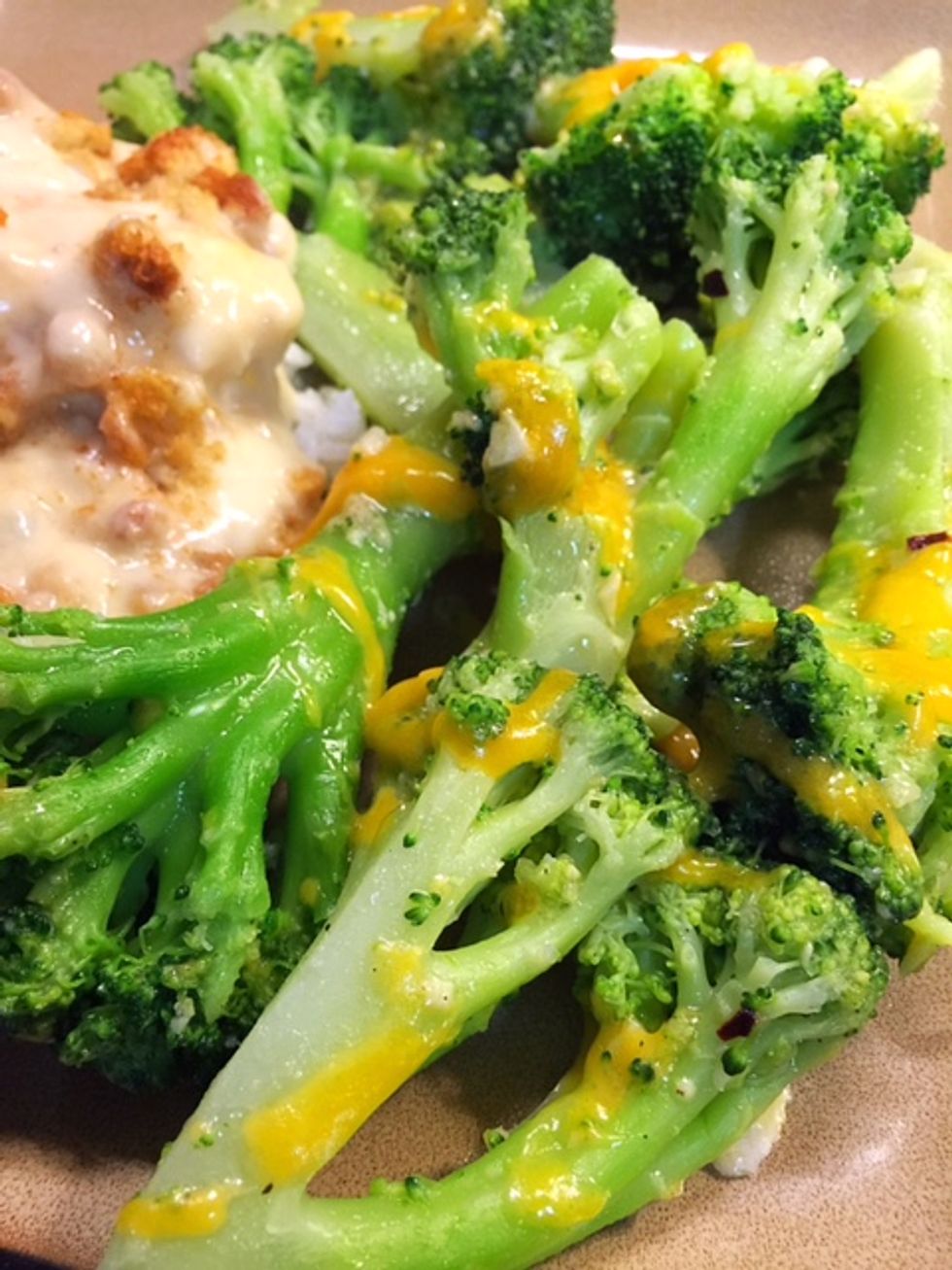 While broccoli cooks, melt butter in the microwave, let cool a few minutes and then add parmesan cheese, a pinch of red pepper flakes, a dash of black pepper,...