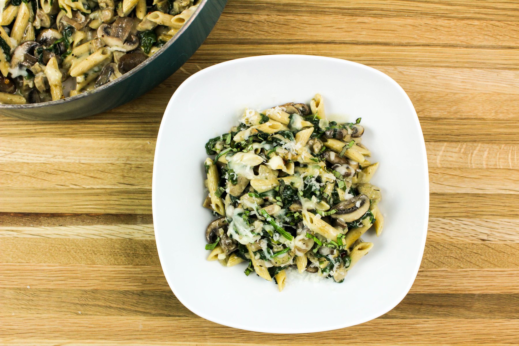 Skillet Chicken Sausage Alfredo Pasta-Delicious bowl of comfort food to cure your cheese & pasta craving. Delicious lean chicken sausage mixed with fresh spinach and mushrooms in a decadent yet healthy alfredo sauce. Made in under 30 minutes! Weight Watchers friendly .