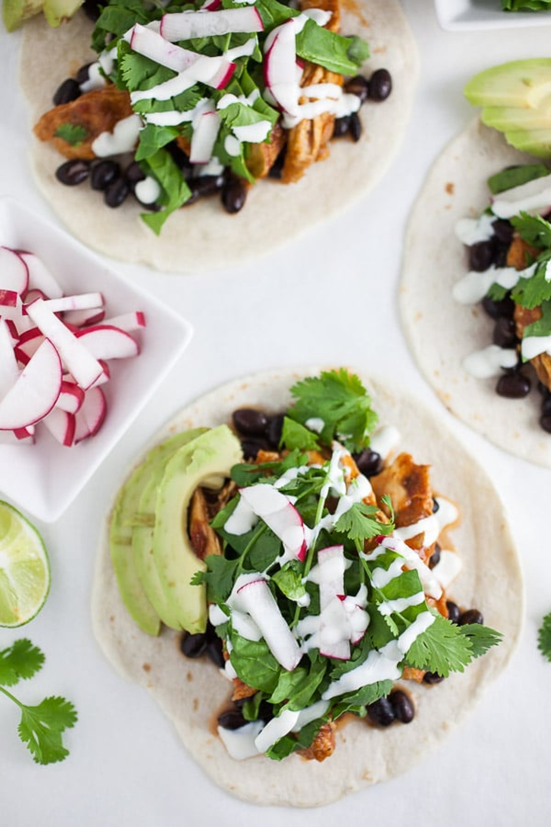 Skillet Chipotle Chicken Tacos with Mexican Crema