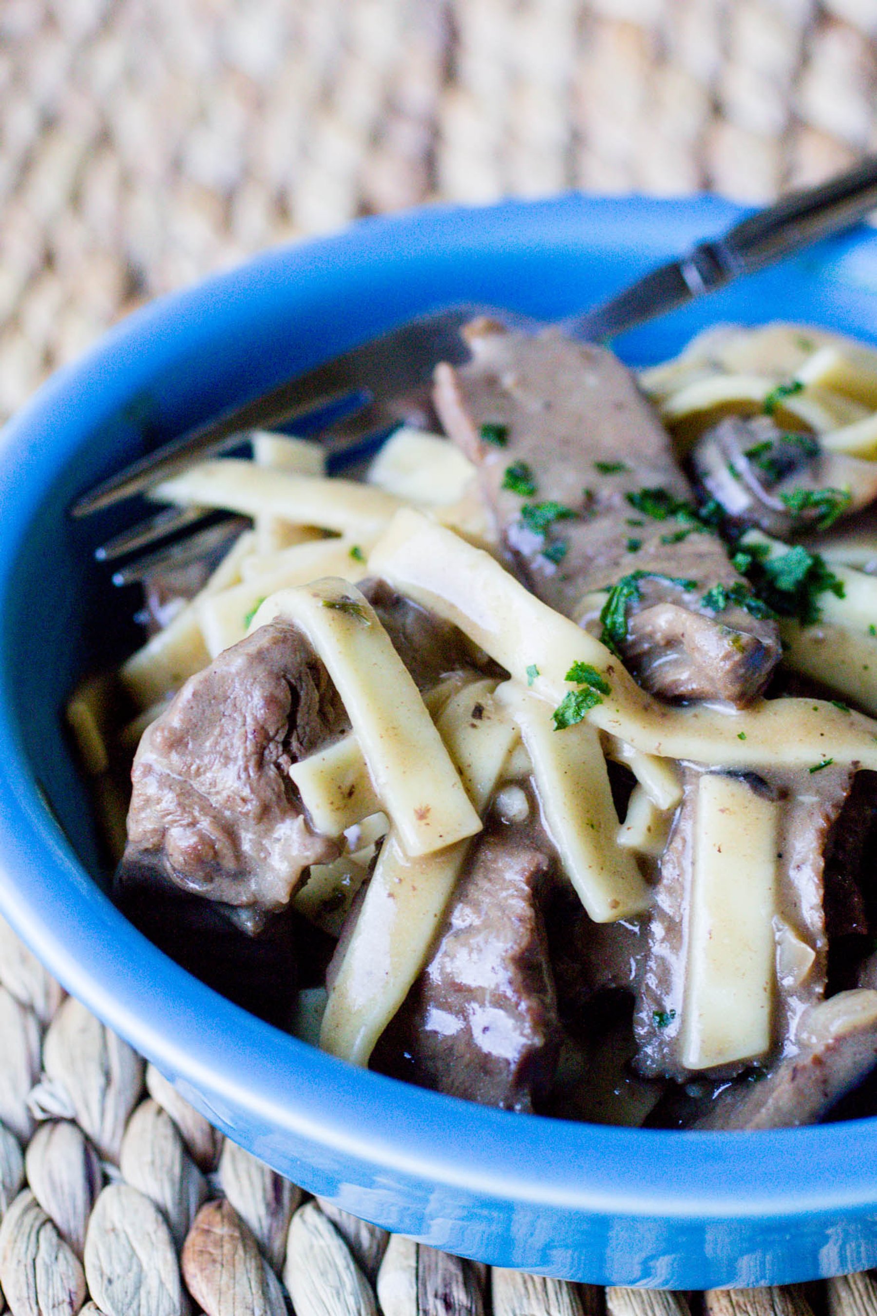 Easy, delicious comfort food! Tender beef in a rich sour cream sauce over a bed of egg noodles. YUM.