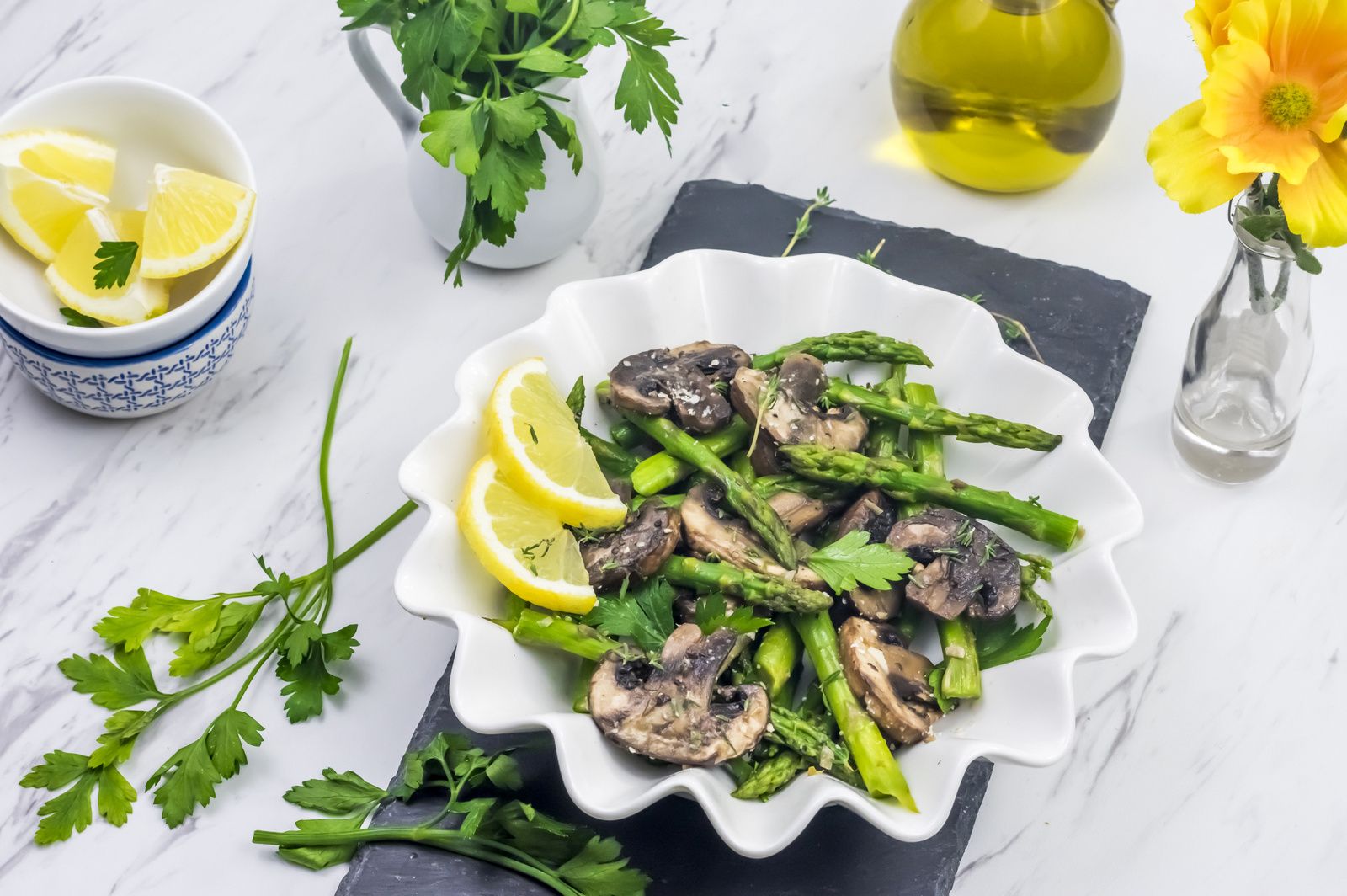 Skillet Mushroom Asparagus goes well with grilled or baked chicken, pork chops, fish, and steak. The Skillet Mushroom Asparagus is also gluten-free and Whole 30 approved. If you choose to skip the butter and increase the olive oil to 2 tablespoons and it becomes Paleo approved and Vegan as well.