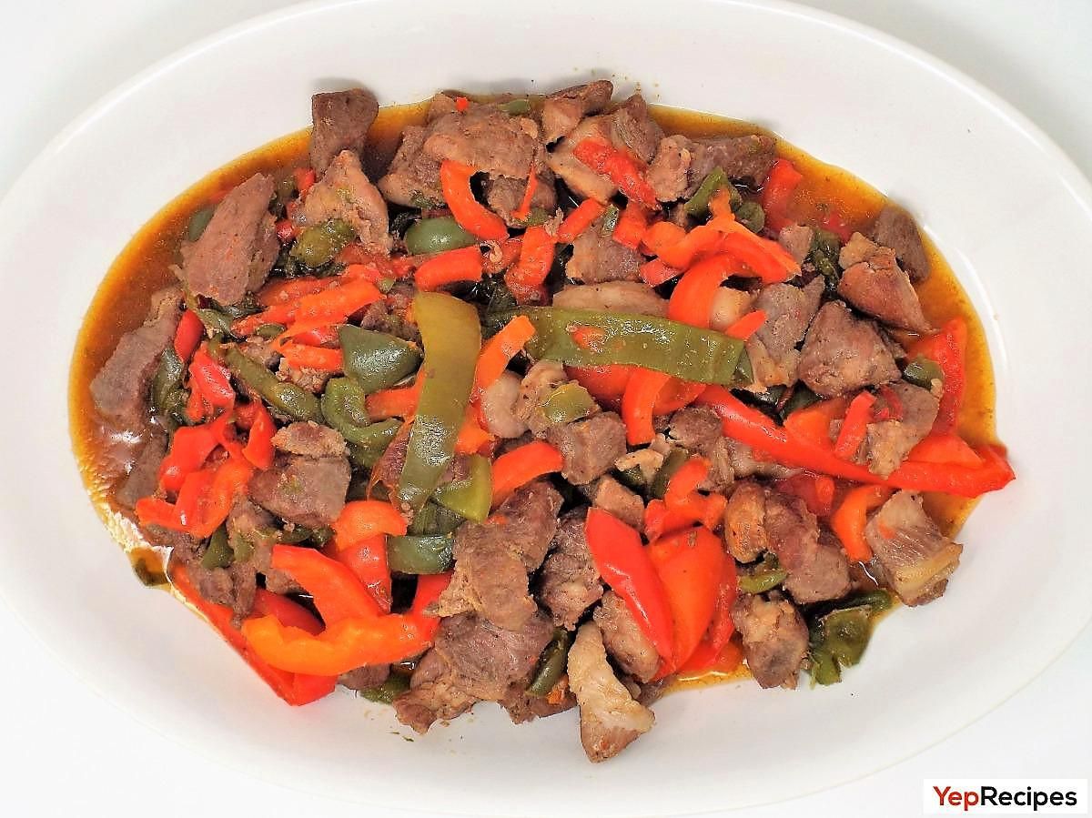 Skillet Pork and Sweet Peppers YepRecipesMay 23, 2022 20 YepRecipes.comSeared cuts of pork shoulder seasoned with salt & pepper and cooked with sliced bell peppers.1See the full directions on my site