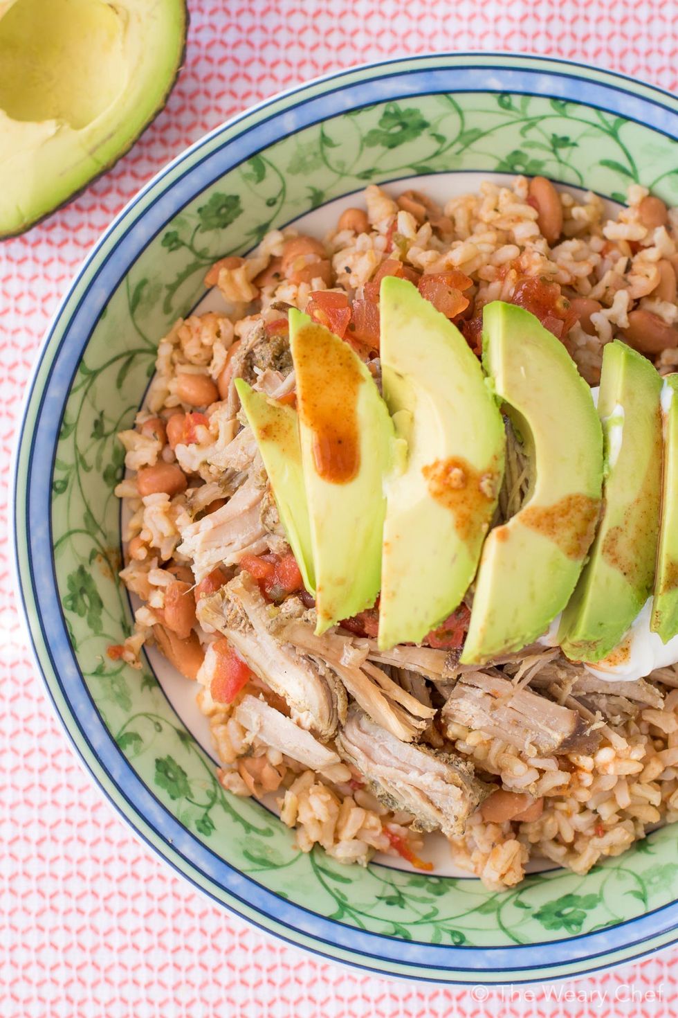 This very easy Mexican Pinto Beans and Rice topped with tender pork carnitas is delicious dinner the whole family will love!