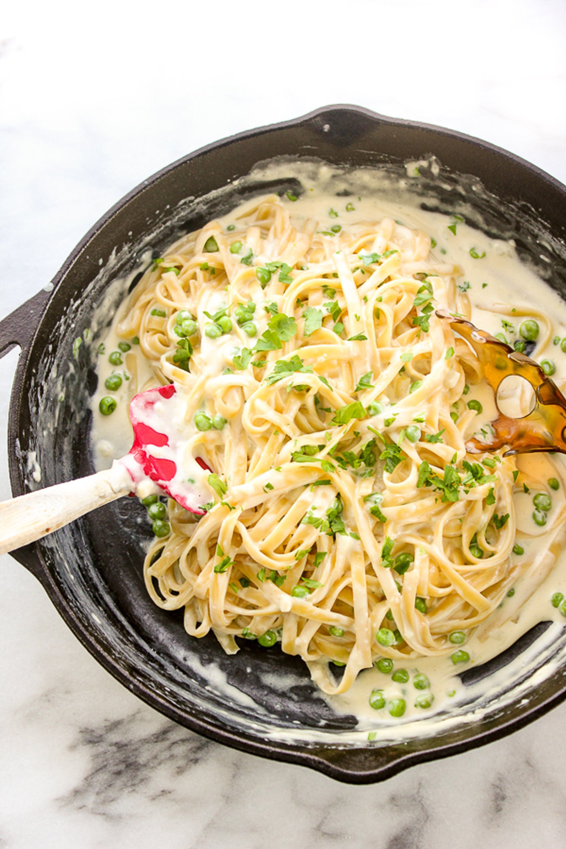 With some easy swaps, Skinny Fettuccine Alfredo is still full of creamy, garlicky, cheesy flavor but without all of the calories of a traditional alfredo sauce.
