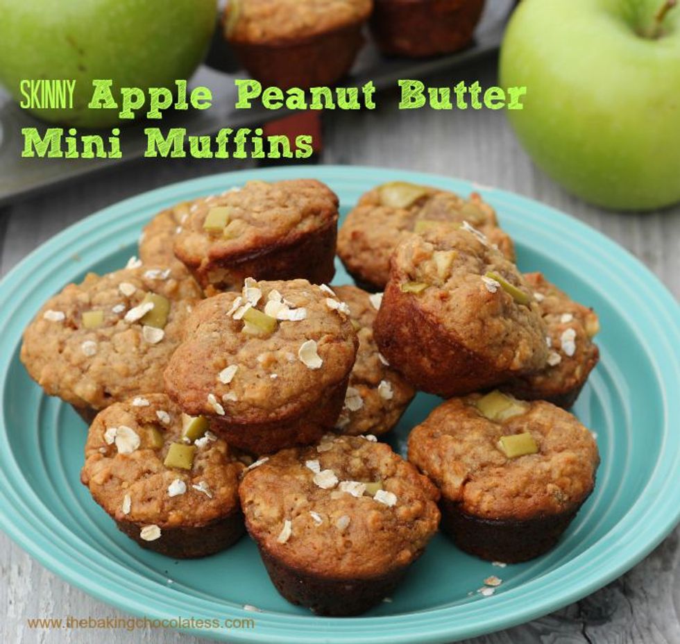 Lightened up Skinny Apple Peanut Butter Mini Muffins are bursting with peanut butter flavor and bits of Granny Smith apples. I love popping these little mini muffins in my mouth! Aren’t they just soooo cute?