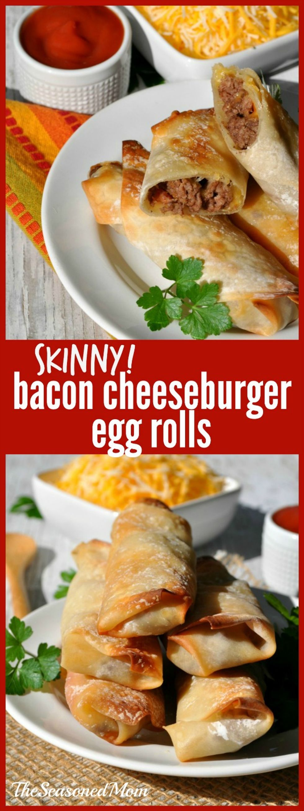 These Skinny Bacon Cheeseburger Egg Rolls have all of the flavors that you love in a big, juicy burger – with none of the guilt! They’re easy to prep in advance, and they are perfect for both a healthy weeknight dinner and for a tasty party appetizer at your next March Madness get-together.