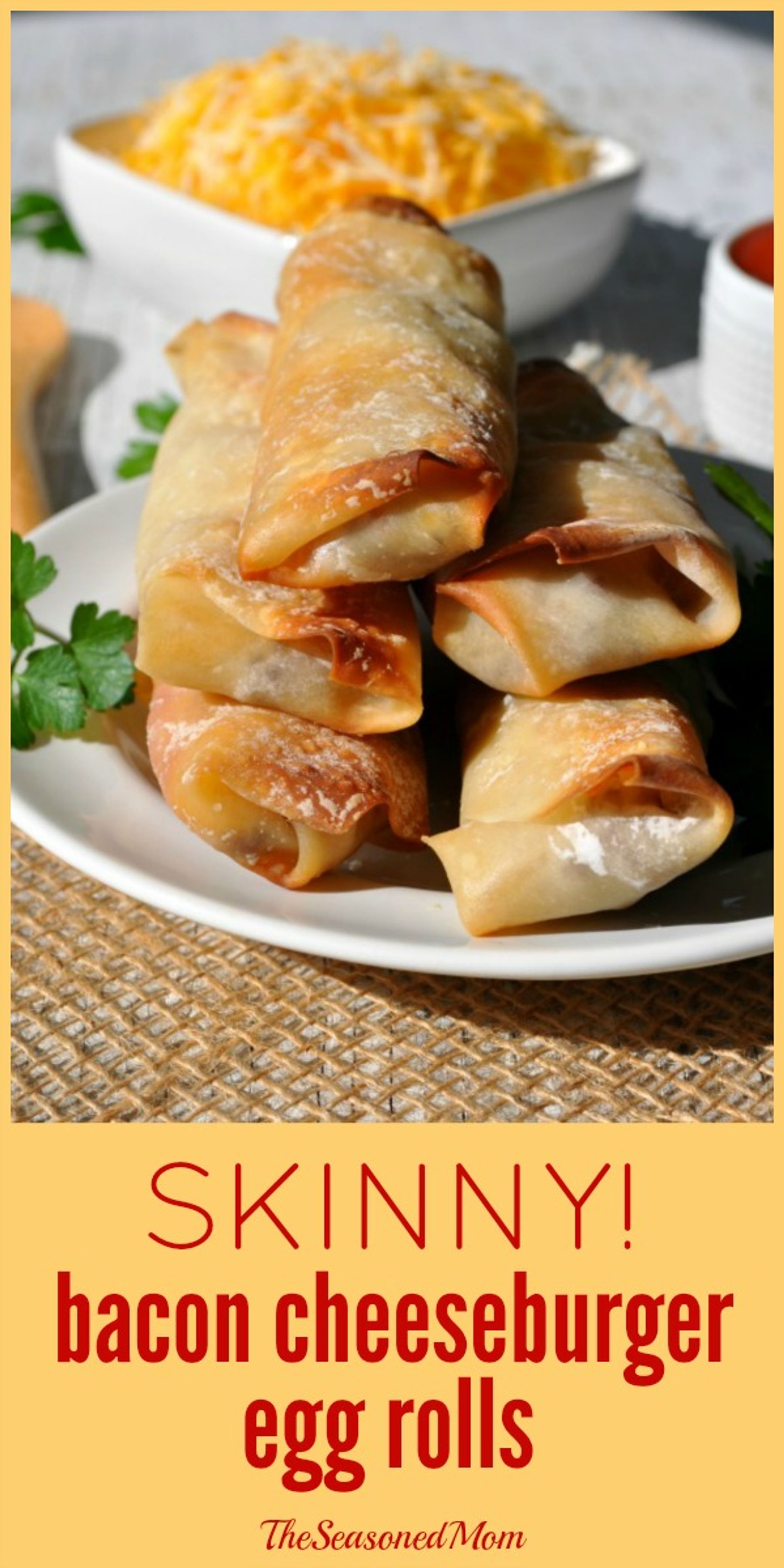 These Skinny Bacon Cheeseburger Egg Rolls have all of the flavors that you love in a big, juicy burger – with none of the guilt! They’re easy to prep in advance, and they are perfect for both a healthy weeknight dinner and for a tasty party appetizer at your next March Madness get-together.