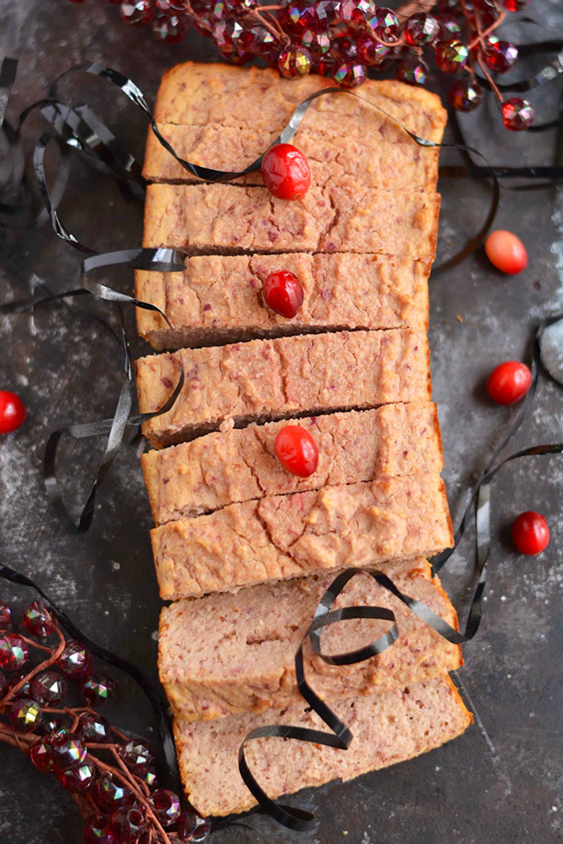 Skinny Cranberry Coconut Bread made low in sugar with healthy, wholesome ingredients. The perfect thick & chewy bread to celebrate the holidays, and makes a great gift! Gluten Free + Low Calorie + Paleo