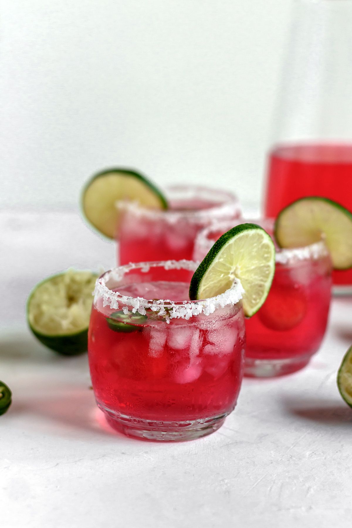 Skinny Jalapeño Watermelon Margaritas are so easy to make with the perfect balance of sweet and spicy. The ultimate summer margarita!