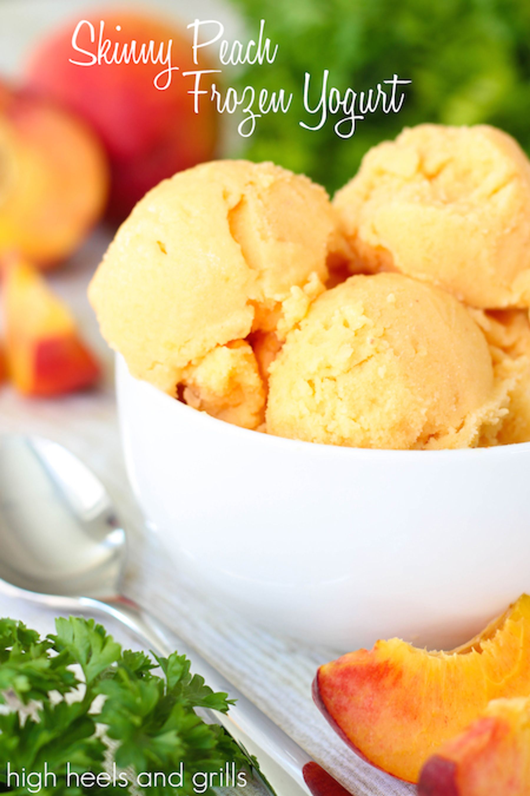 Delicious Peach Frozen Yogurt that will satisfy your sweet tooth, but won't pack on the pounds!