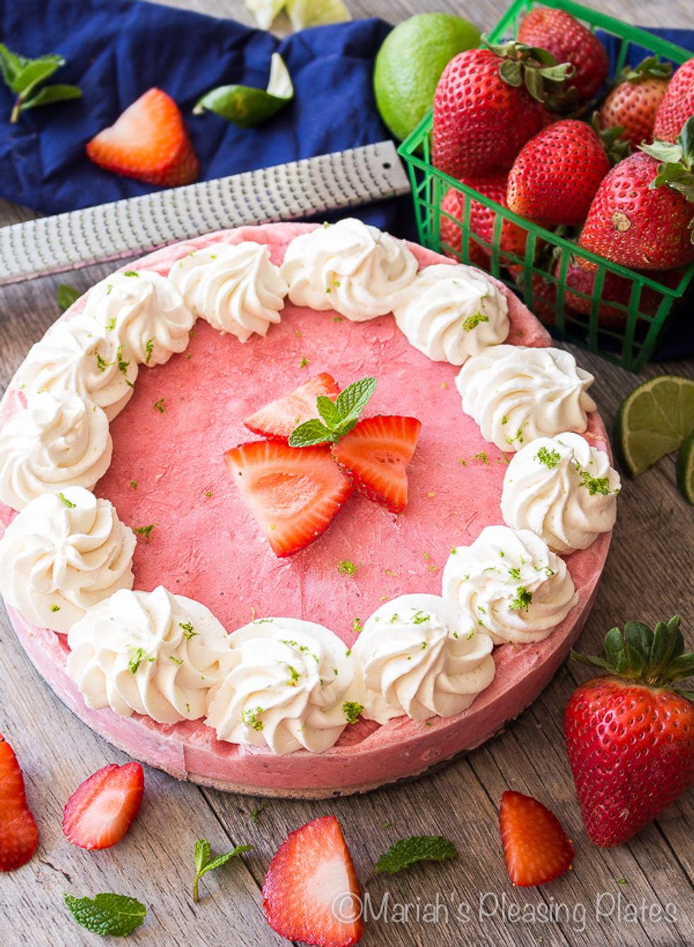 This Skinny Strawberry Daiquiri Pie is the perfect frozen treat. Loaded with sweet strawberries, fresh lime juice and a lightened up pretzel crust, you’ll be feeling like your sipping on your favorite cocktail.