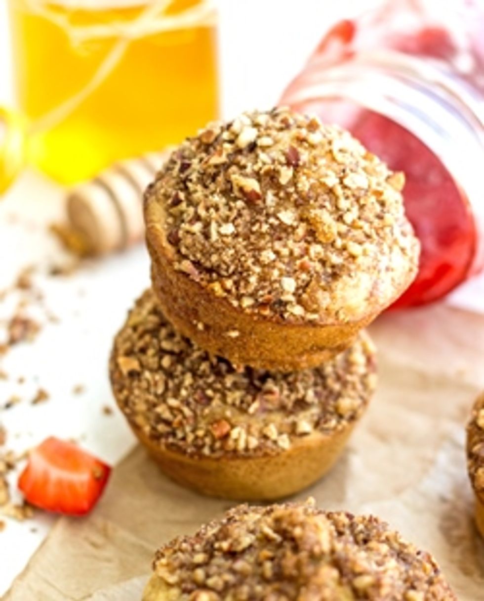 Skinny Strawberry Muffins with a Cinnamon Pecan Streusel