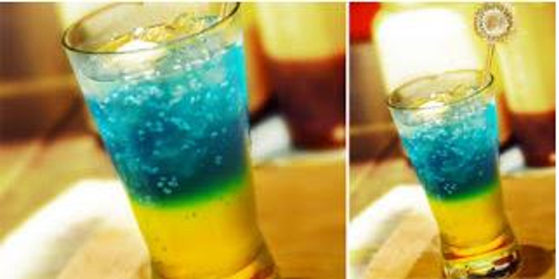 3. Pour soda and chunks of blue ice cubes into your mix before.