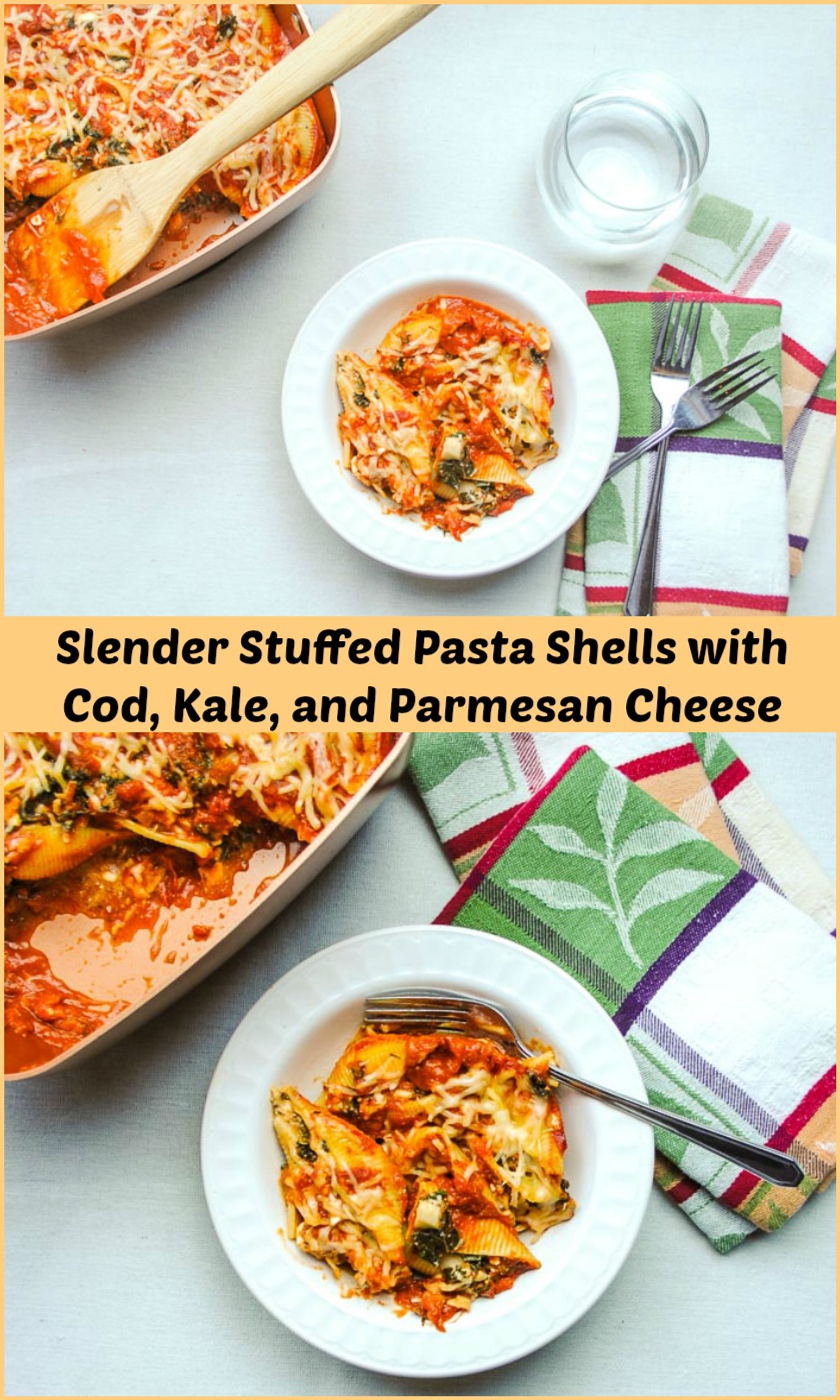 Slenderized Stuffed Pasta Shells with Cod, Kale, and Parmesan Cheese