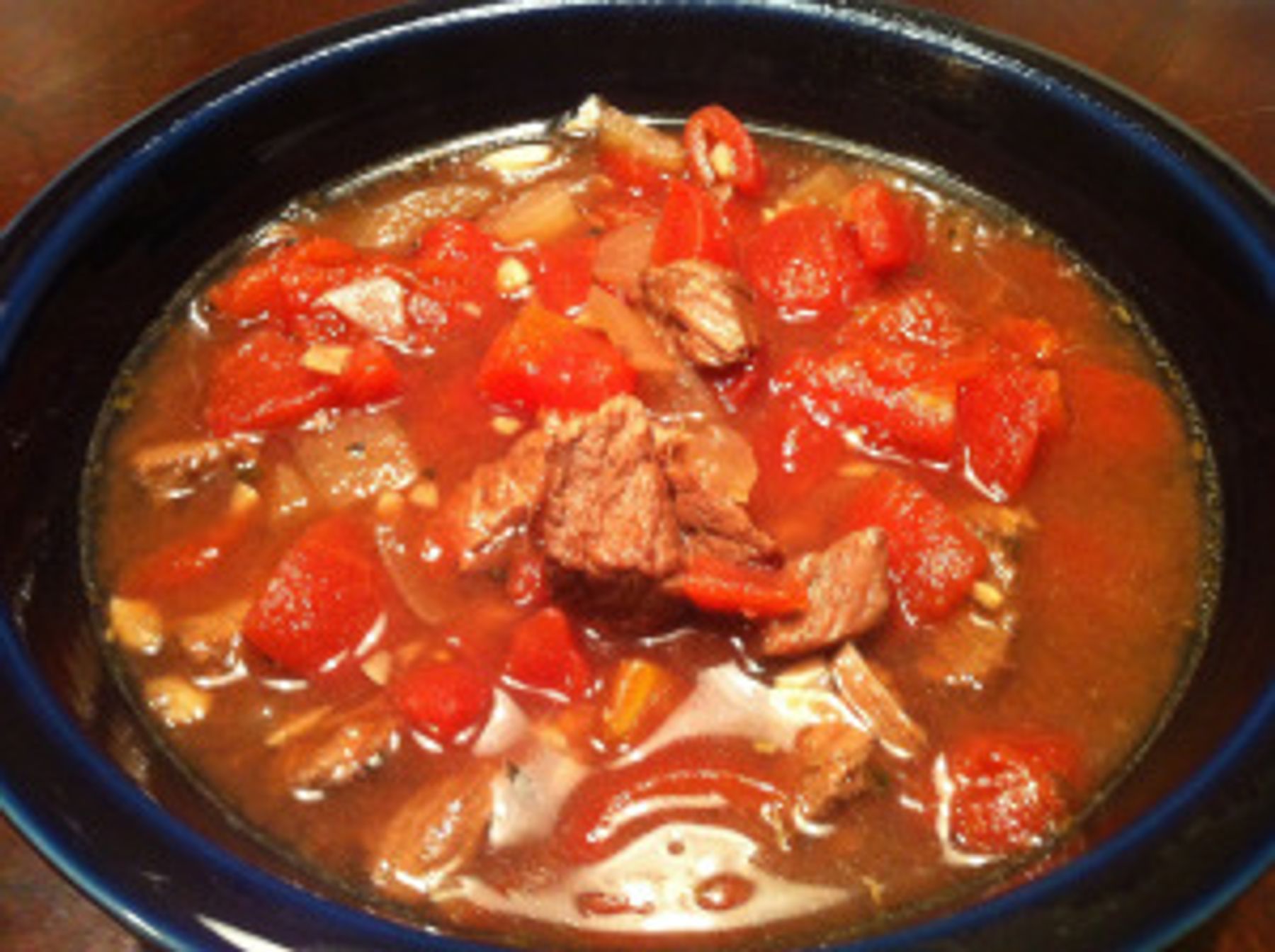 In a saute pan, lightly sear beef. You don’t have to cook it all the way through, just enough to seal in the flavor. Put it in a slow cooker with all the rest of the ingredients. Let it cook on low for...