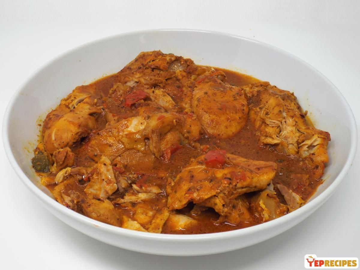 A South American inspired dish consisting of chicken slow cooked with peppers in an achiote and coconut milk sauce and served with rice.
