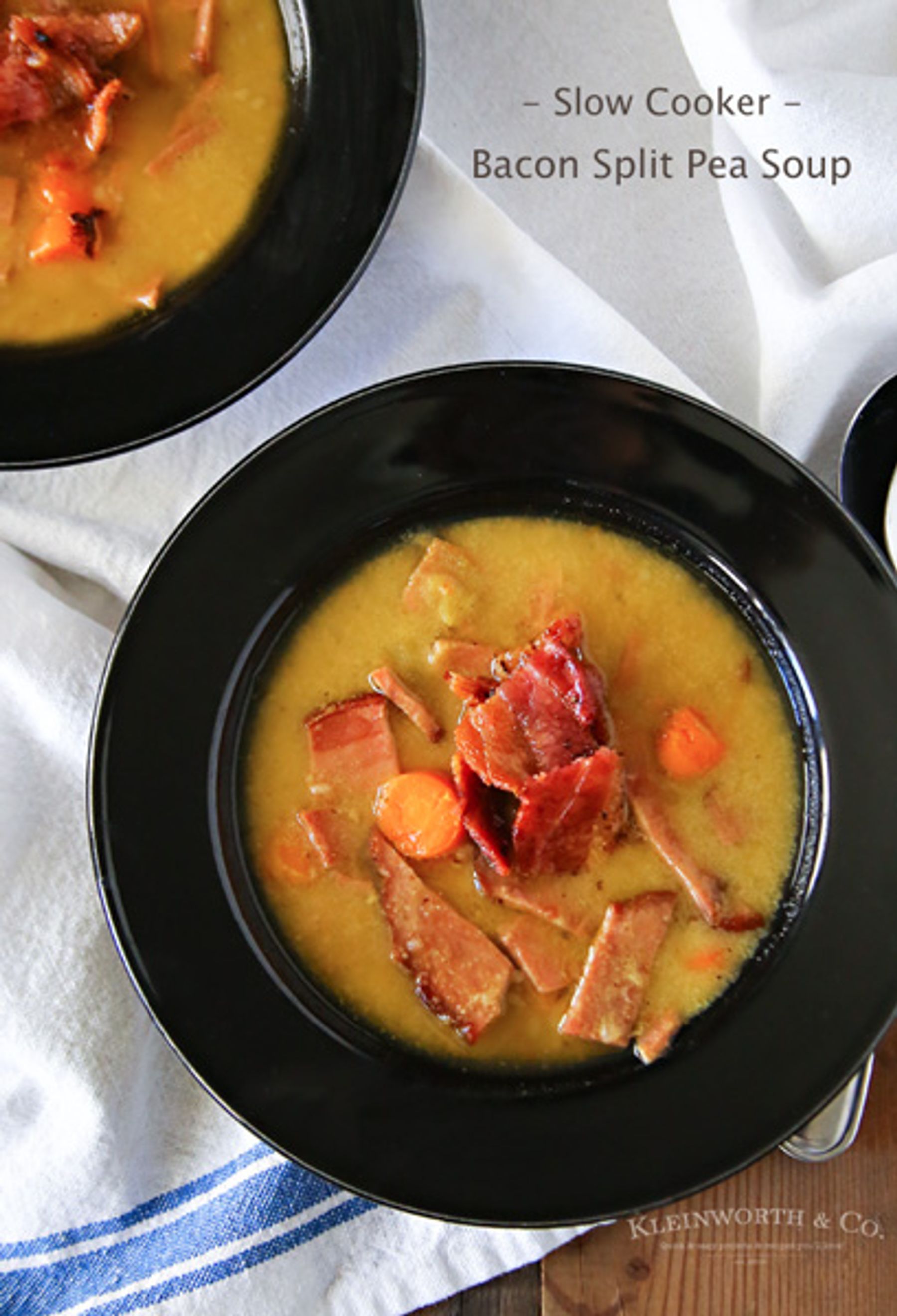 Simple split pea soup recipe made in the slow cooker, loaded with leftover ham & bacon.
