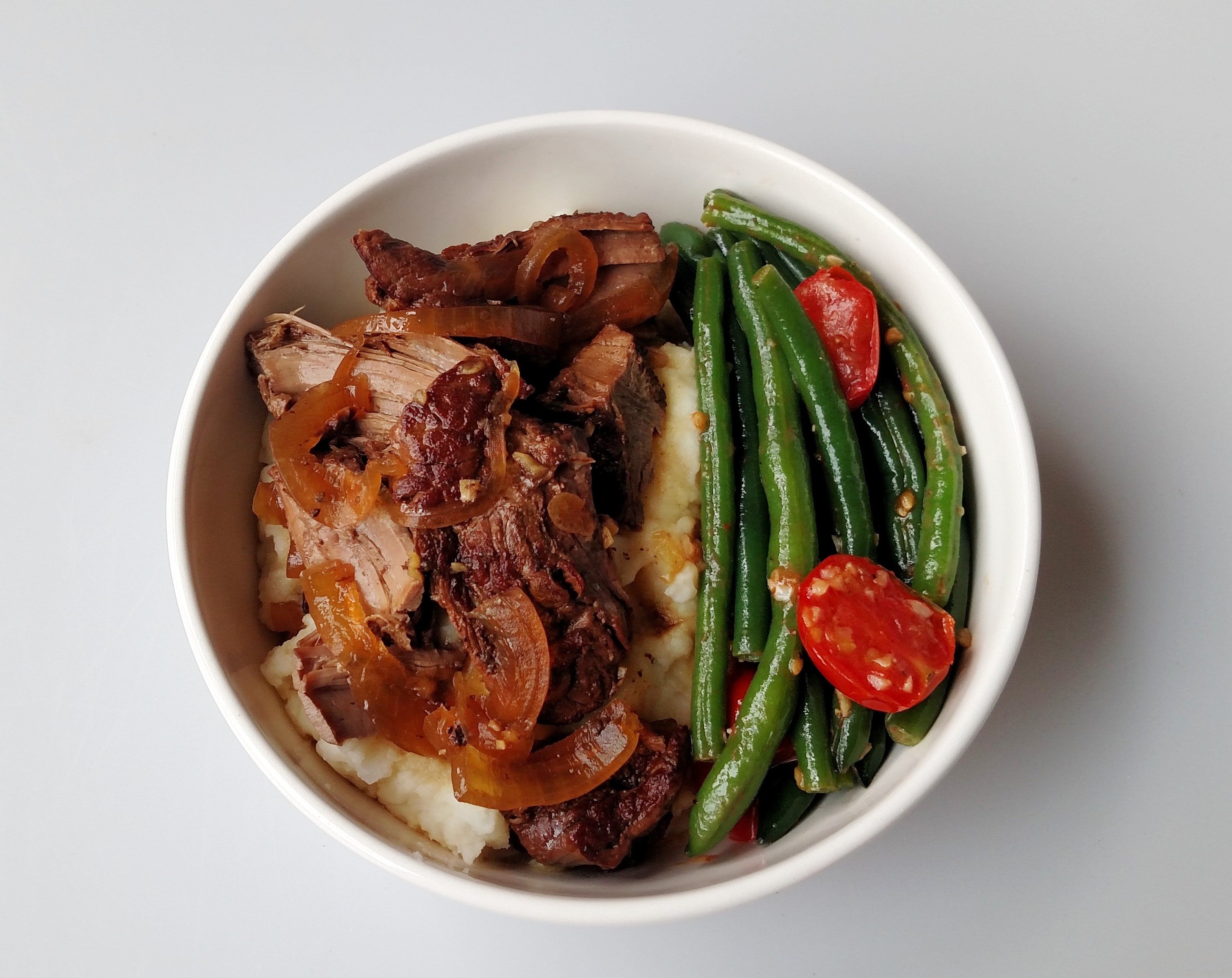 Chunks of tender beef roast slow cooked with onion, garlic, and balsamic vinegar create a savory Slow Cooker Balsamic Beef that's perfect over mashed potatoes, egg noodles, or rice.