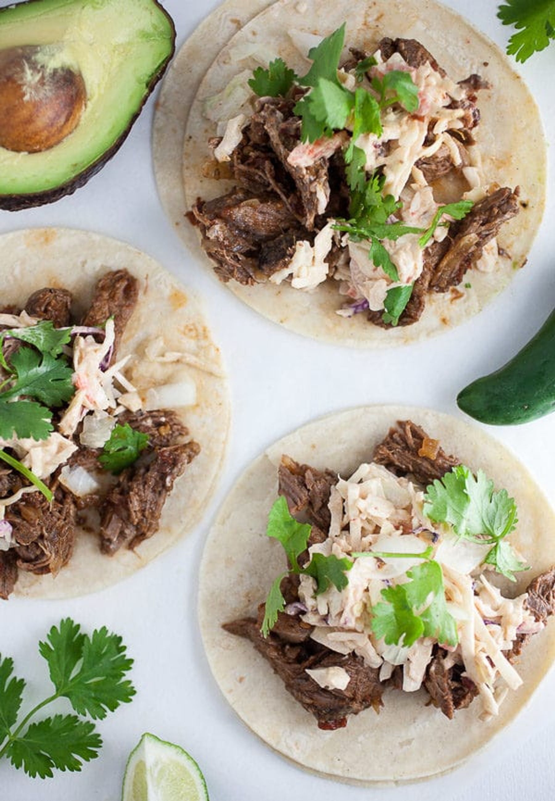 Slow Cooker Barbacoa Tacos with Chipotle Slaw