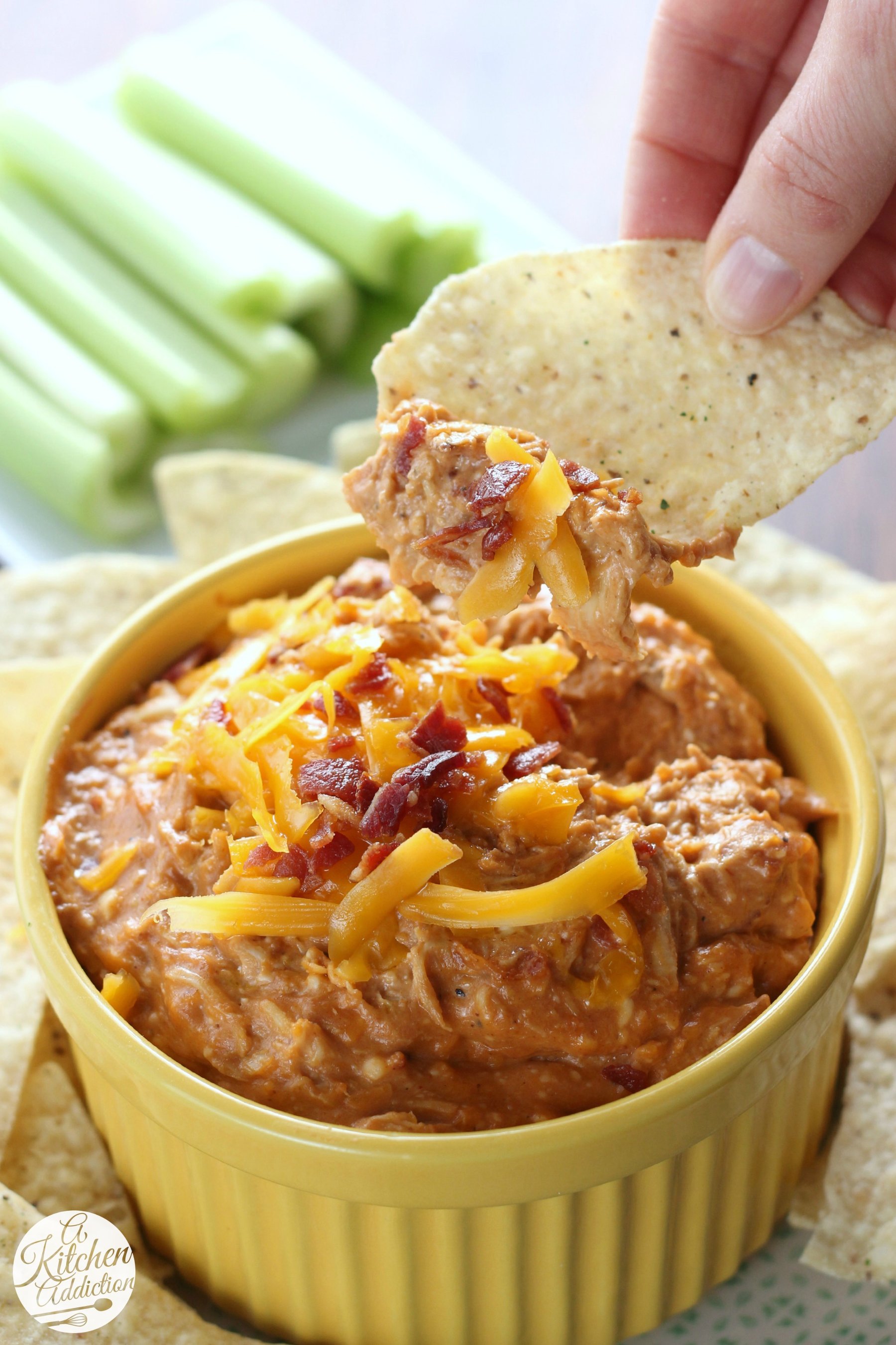Creamy, cheesy, tangy barbecue chicken dip sprinkled with bacon and made in a slow cooker!