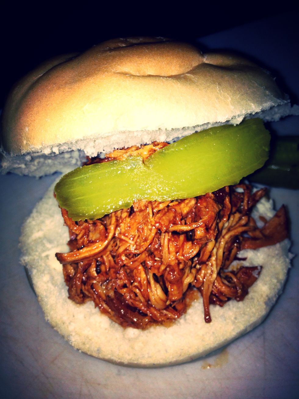 6 boneless skinless chicken breasts , 12 oz of your choice of BBQ sauce( I used my homemade rootbeer BBQ sauce)