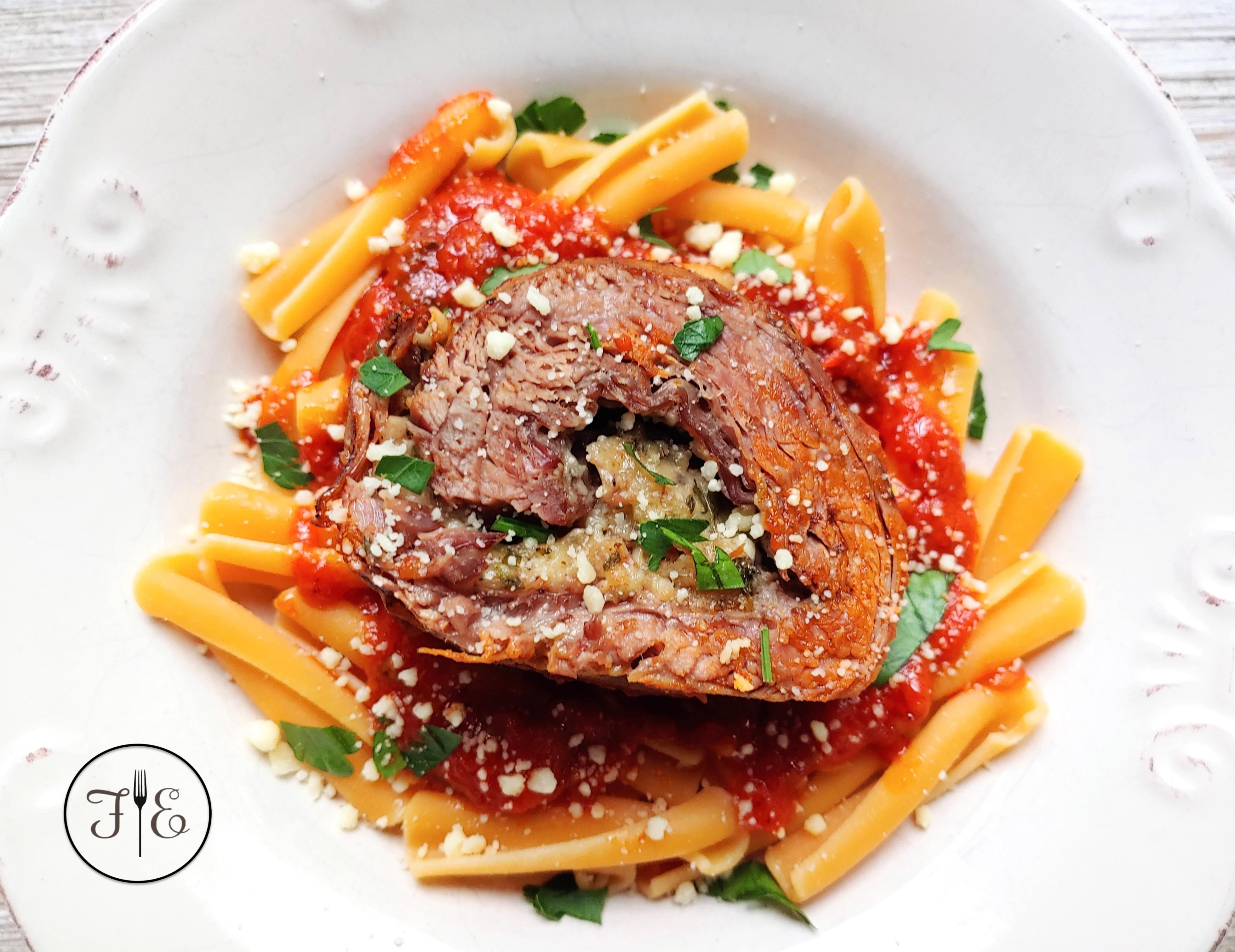 Slow Cooker Beef Braciole, made with flank steak that’s been stuffed with a delectable, garlicky filling, then rolled up and browned in a pan, before being slow cooked in marinara sauce until super tender. Serve slices of the braciole with your favorite pasta or veggies for the ultimate slow cooker Italian meal!