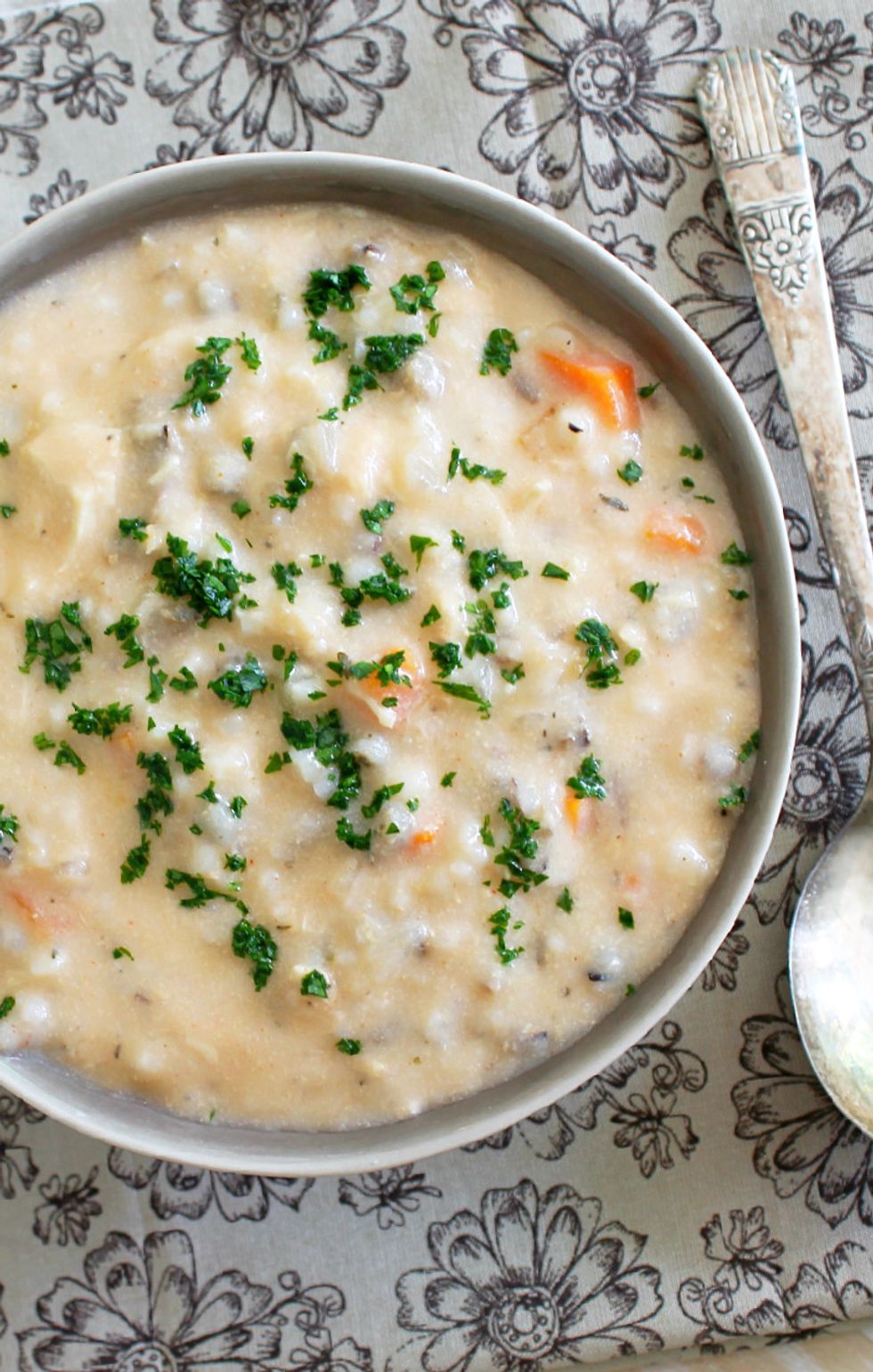 Slow Cooker Beer Cheese Chicken & Wild Rice Soup