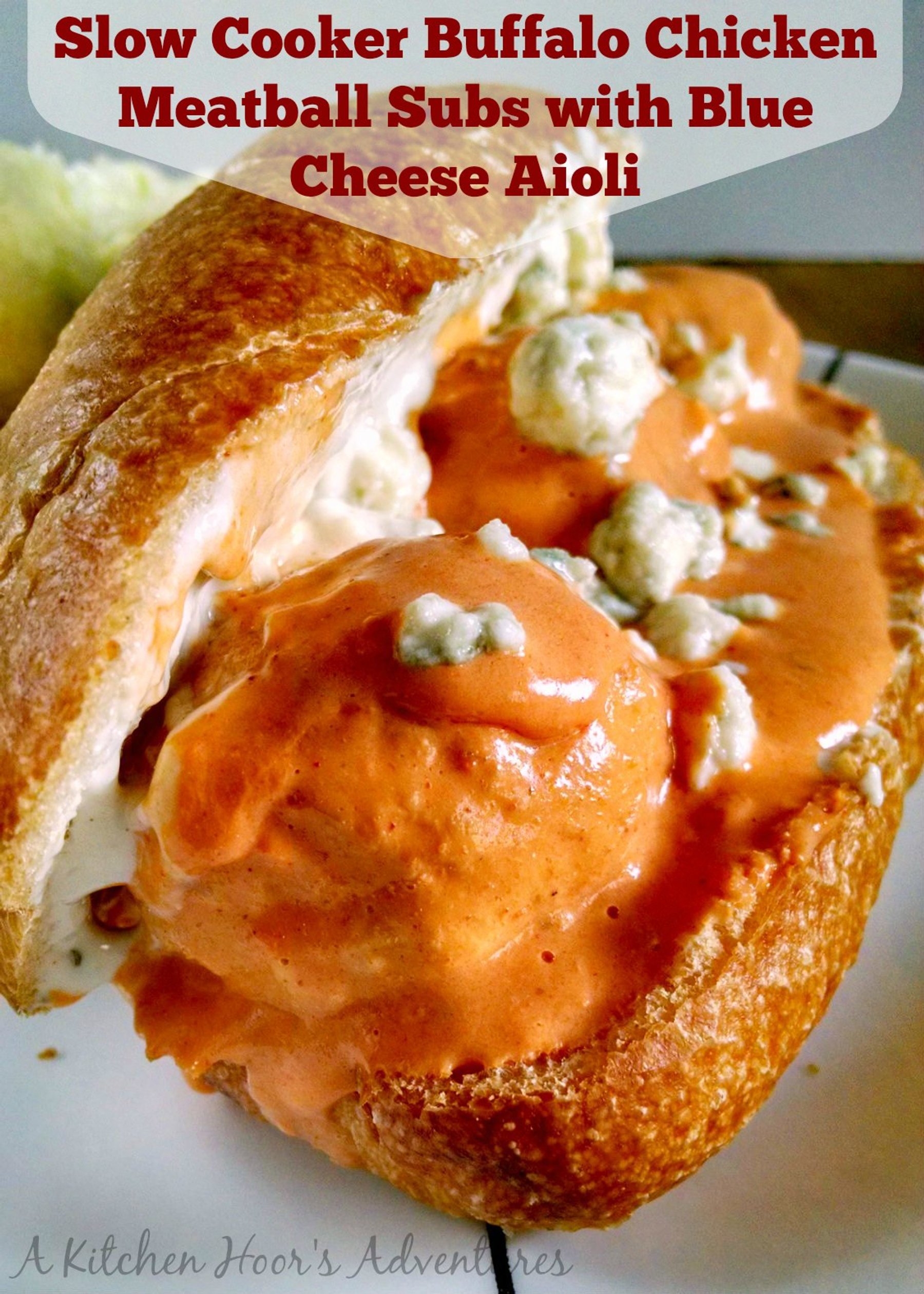 Slow Cooker Buffalo Chicken Meatball Sliders with Blue Cheese Aioli