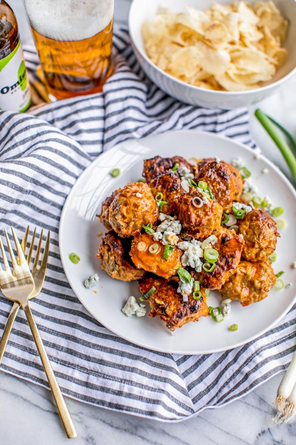 Looking for a Whole30 Approved gameday appetizer? These Paleo slow cooker buffalo chicken meatballs are gluten-free, dairy-free (blue cheese is optional), low carb and absolutely delicious with an all-natural hot sauce! Made in the crockpot, this quick + easy meatball recipe is the perfect healthy tailgating snack.
