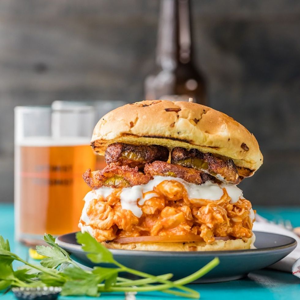 Slow Cooker Buffalo Chicken Sandwiches with Ranch Fried Pickles!! This is our FAVORITE meal for gameday!!