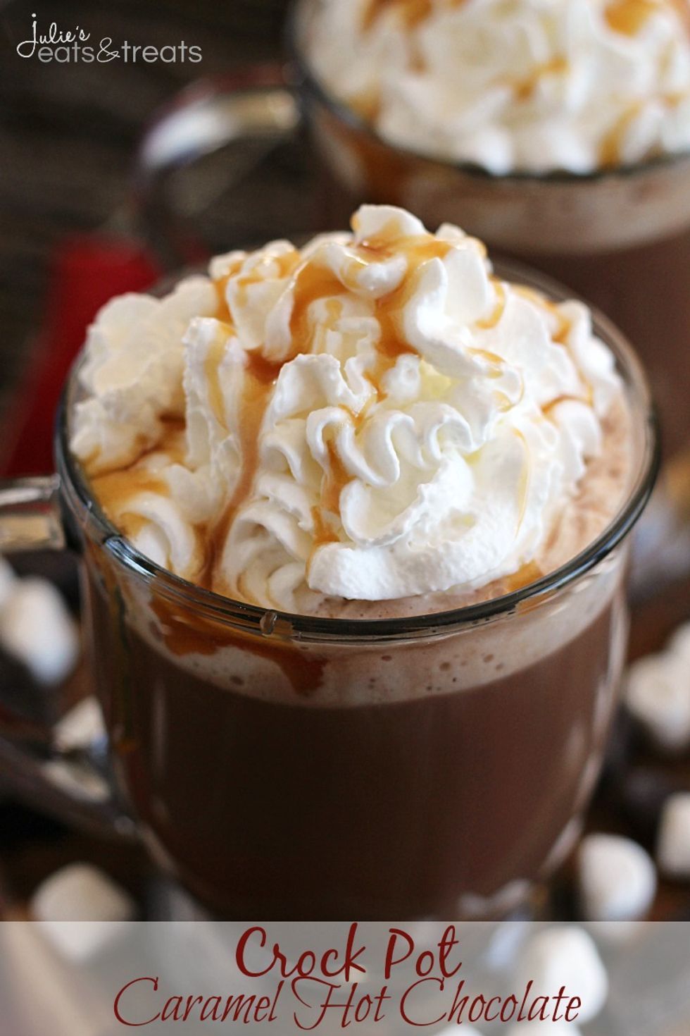 Slow Cooker Caramel Hot Chocolate ~ Slow Cooked, Rich, Hot Chocolate Loaded with Caramel and Topped with Whipped Cream and Caramel!