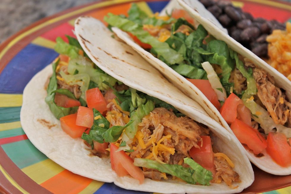 Toppings: cheddar cheese, sour cream, tomatoes, lettuce, cilantro, guacamole