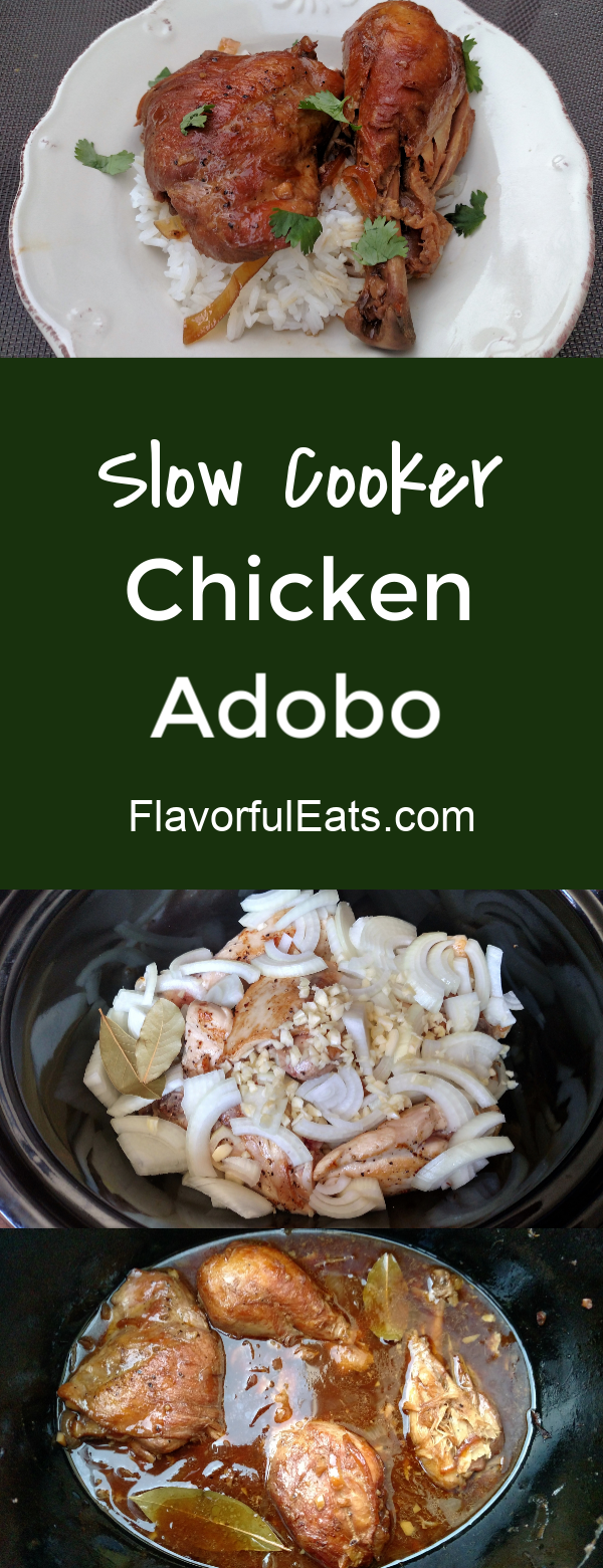 Slow Cooker Chicken Adobo is a made-from-scratch version of the famous Filipino dish made with vinegar, soy sauce, and onions, but letting your slow cooker do all the work for you!