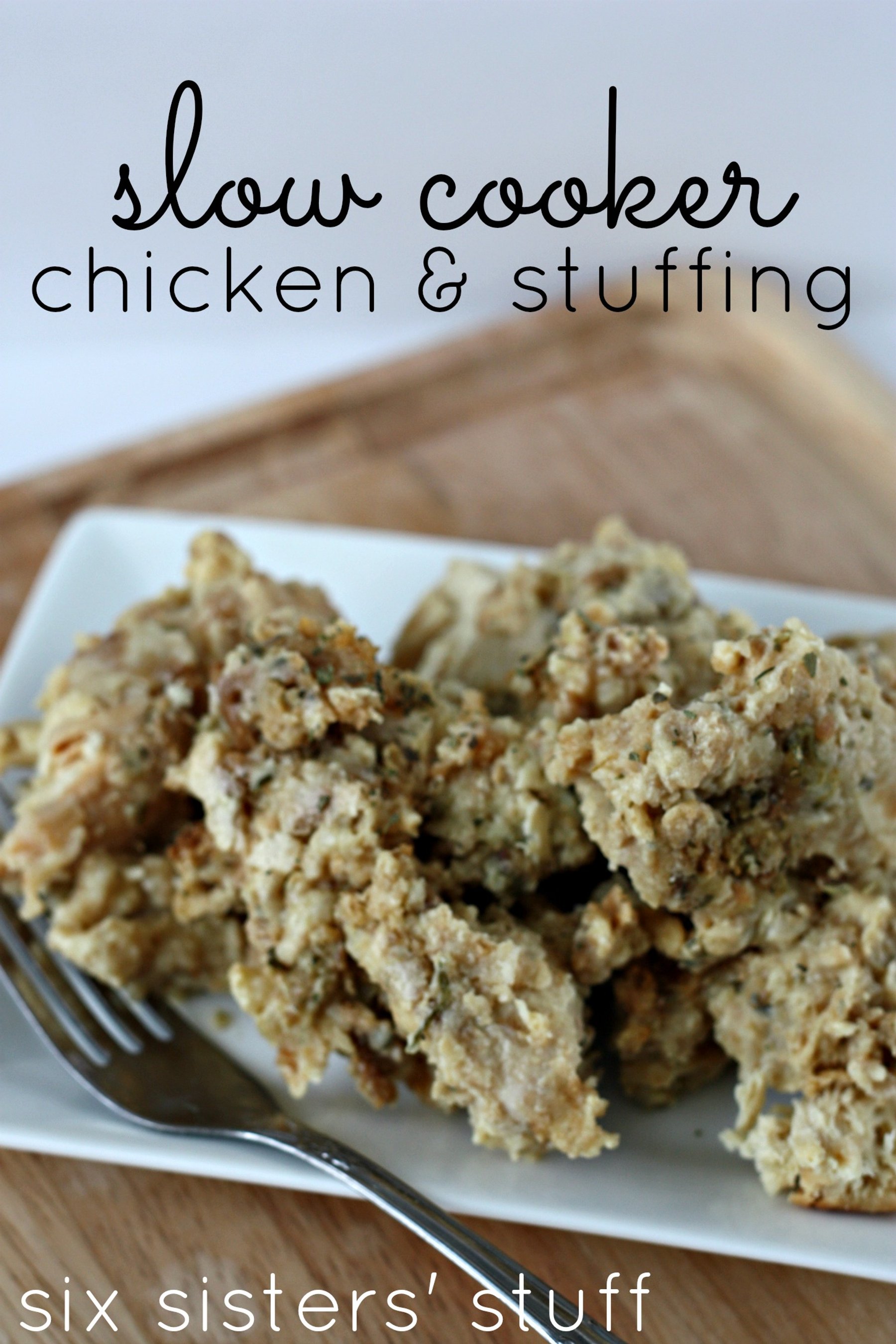 Spray crock pot with non-stick cooking spray. Pour the packet of dry stuffing mix on top of the chicken.