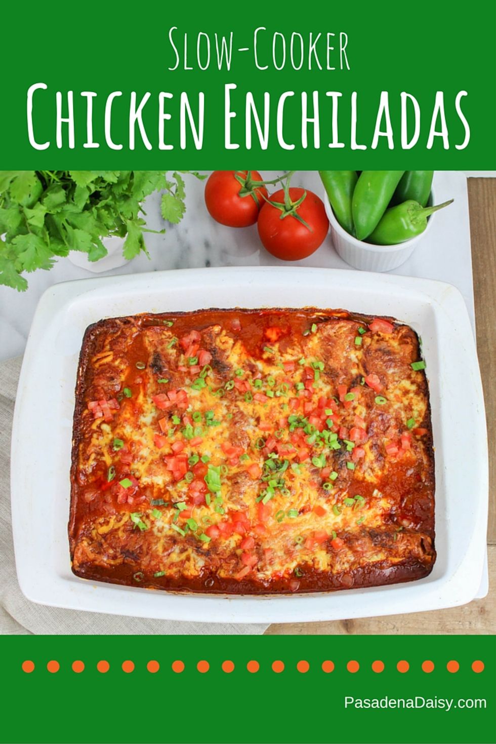 Delicious chicken enchiladas that utilize slow cooker, shredded Mexican chicken and is perfect for dinner tonight as well as freezer meals.