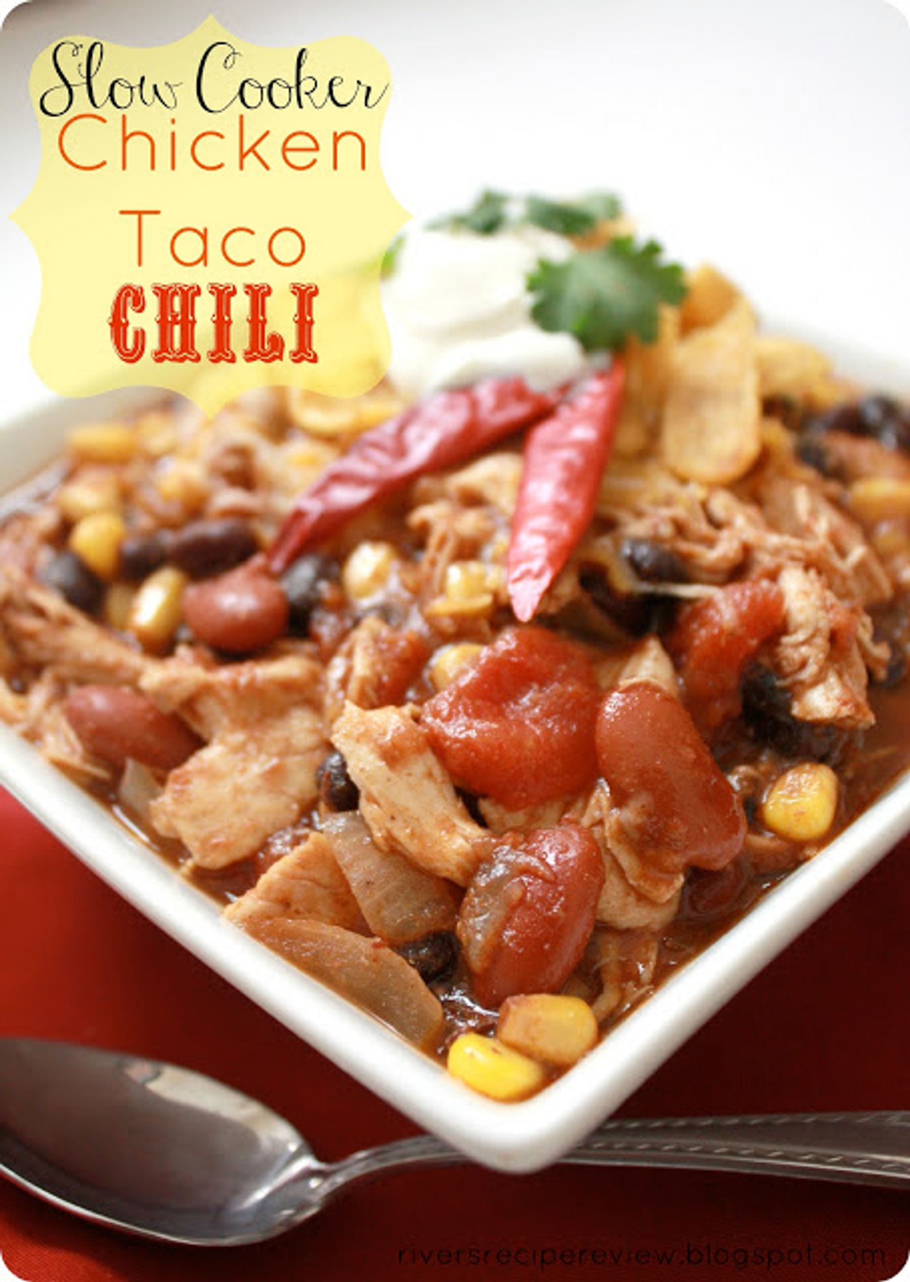 Combine beans, onion, chili peppers, corn, tomato sauce, cumin, chili powder and taco seasoning in a slow cooker. Place chicken on top and cover. Cook on low for 10 hours or on high for 6 hours. Half hour...