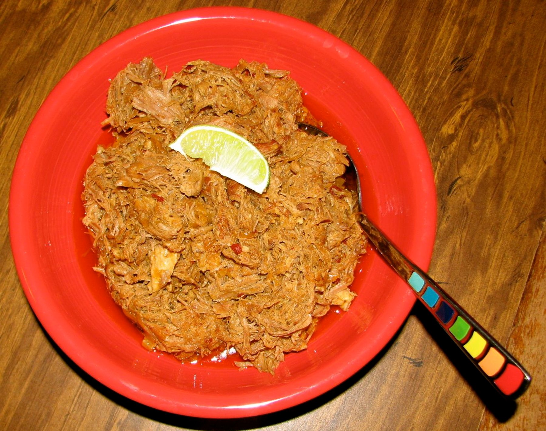 Place the pork butt in a 6 qt. crock pot that has been sprayed with cooking spray. Add the onion on top of the pork. In a small bowl mix together the salt, pepper, cumin, coriander, chili powder and...