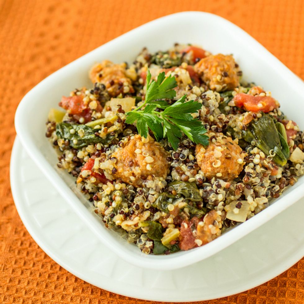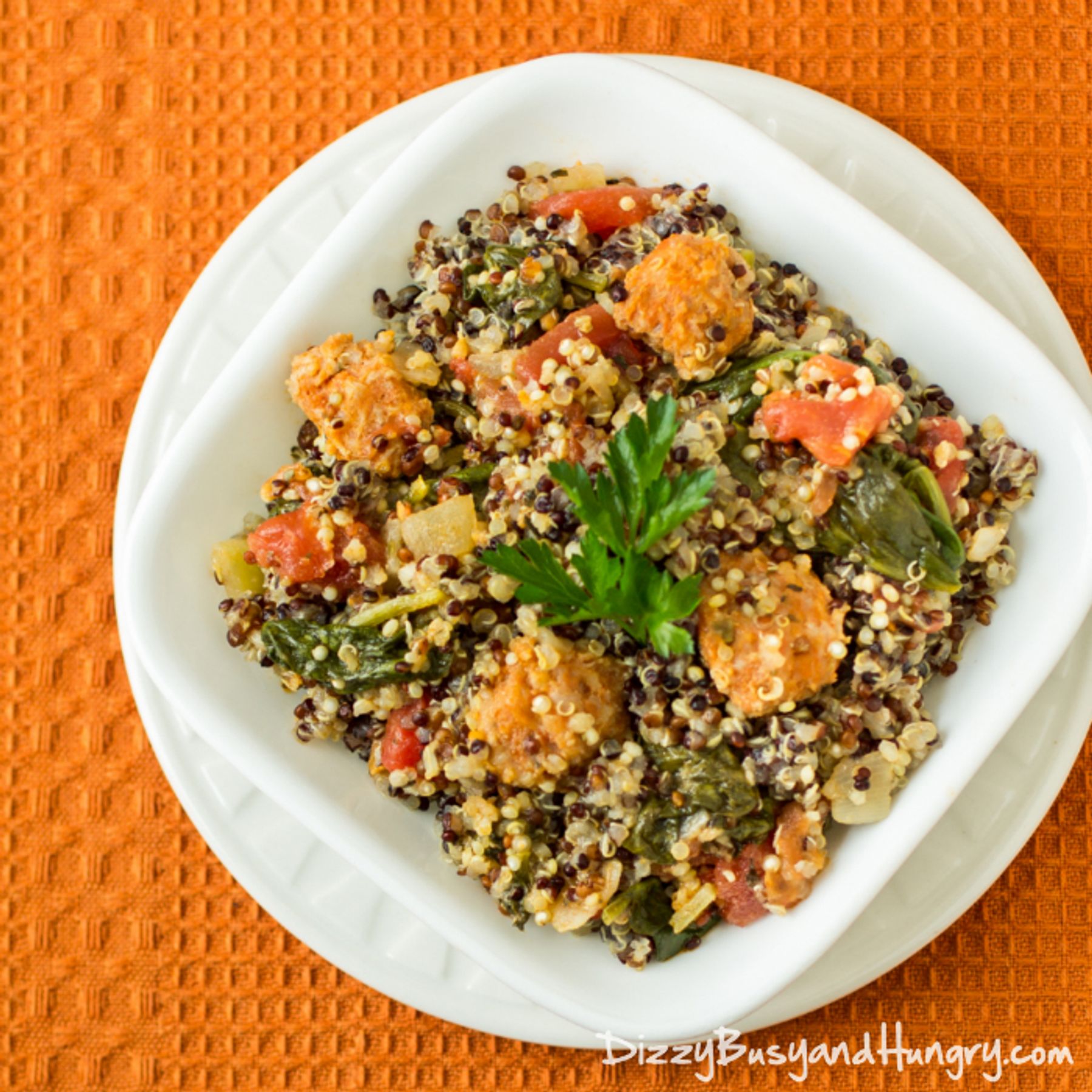 1 and ? cups quinoa, rinsed if necessary (I used tri-color, pre-rinsed quinoa)