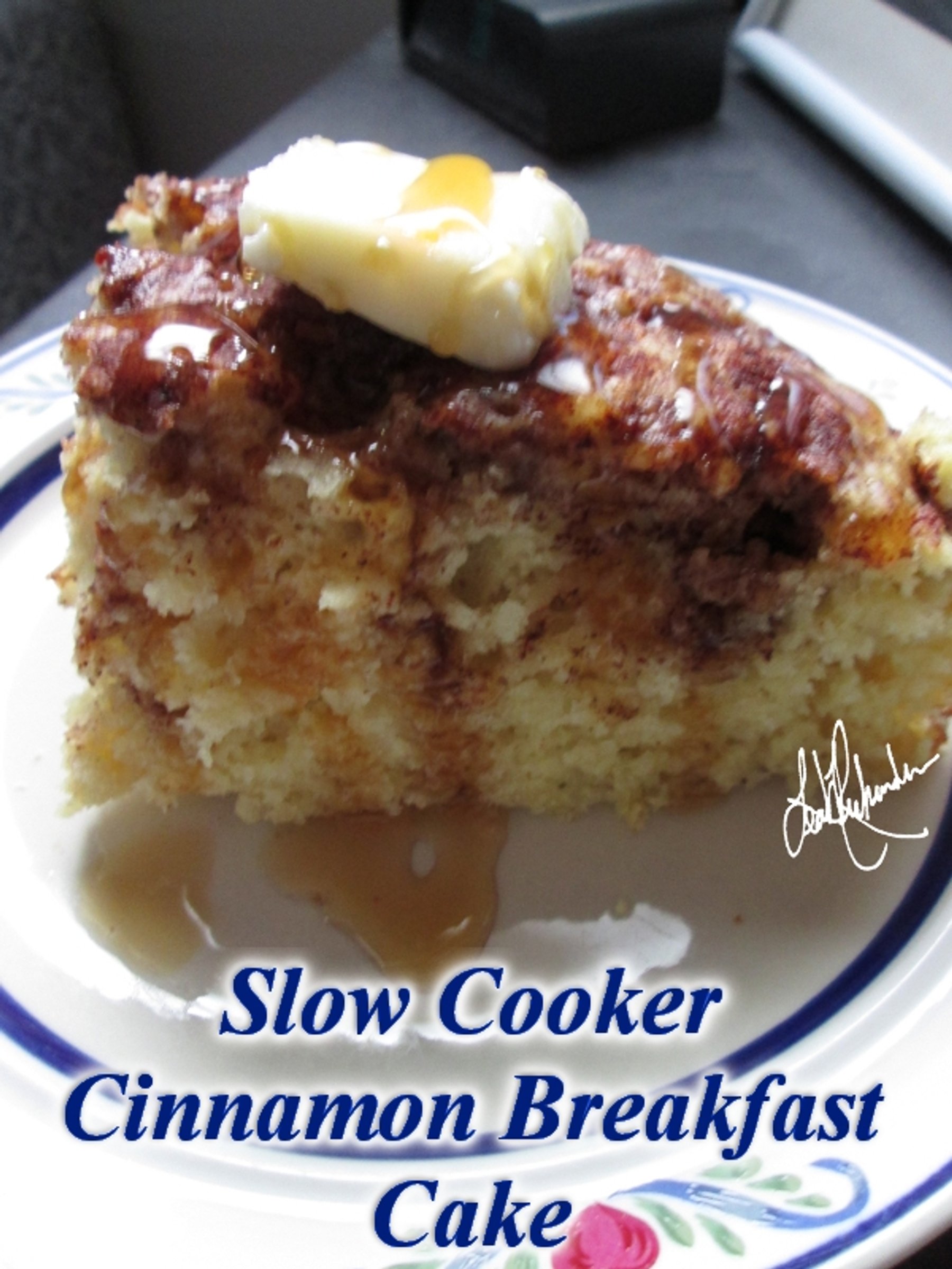 This yummy breakfast dish is like a happy love-child of pancakes and coffee cake! The texture, light and fluffy with a moist, dense crumb, leans more cake-like than pancake. But the flavor is all cinnamon-pancake! Not quite a substitute for pancakes, it cooks in the slow cooker so you don't have to stand at the stove flipping pancakes all morning. Easy and delicious, this is a great go-to breakfast for a little something different!