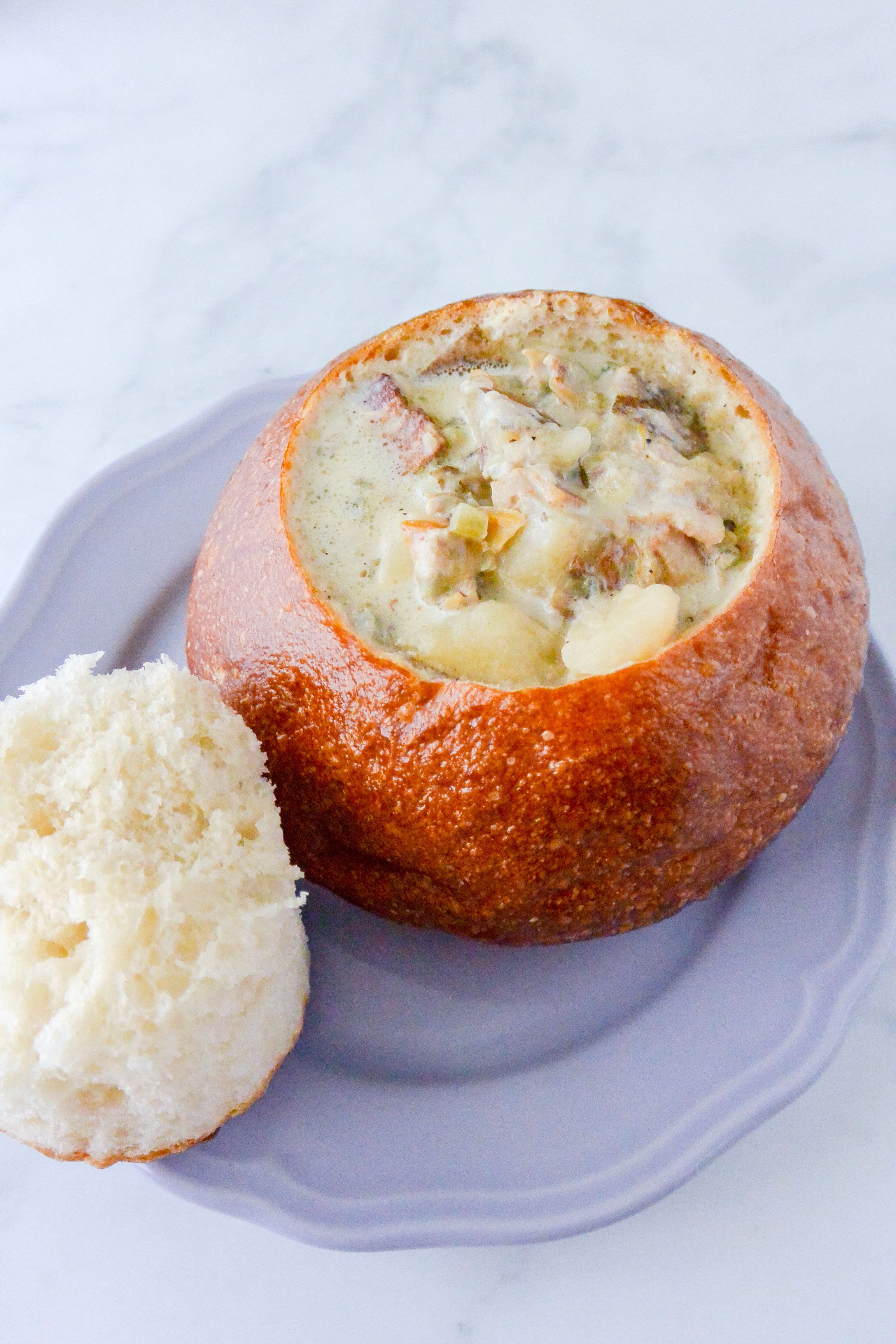 This Slow Cooker Clam Chowder Bowl is creamy, tender, and ready to fill up the belly!