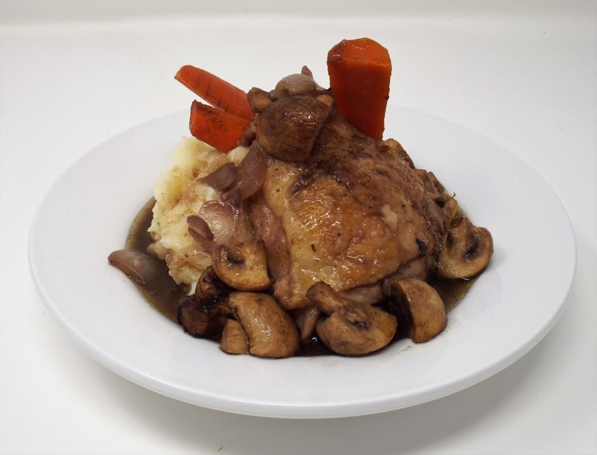 This classic chicken stew with red wine and mushrooms is made a little easier with the use of a slow cooker.