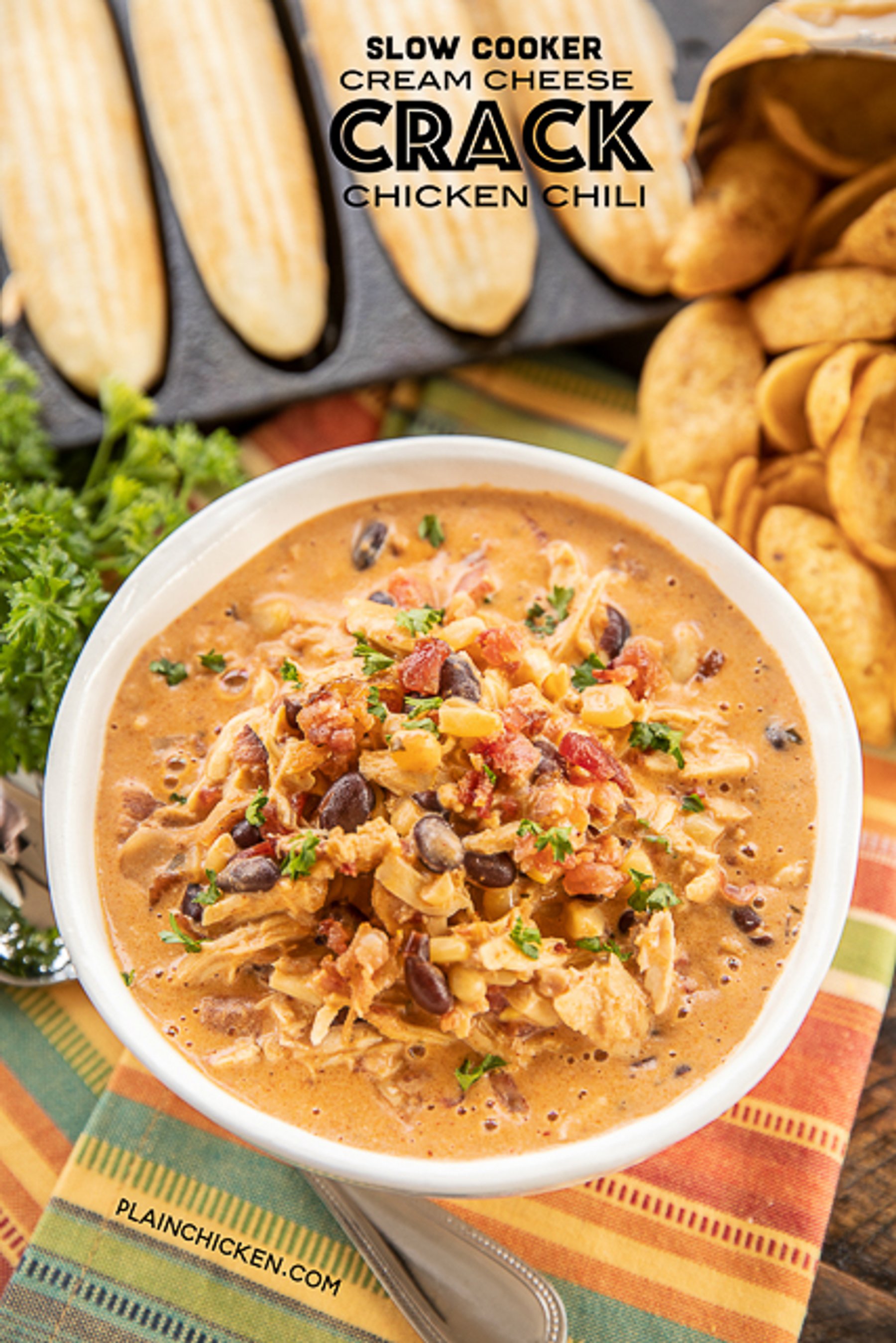 Slow Cooker Cream Cheese Crack Chicken Chili | Plain Chicken®