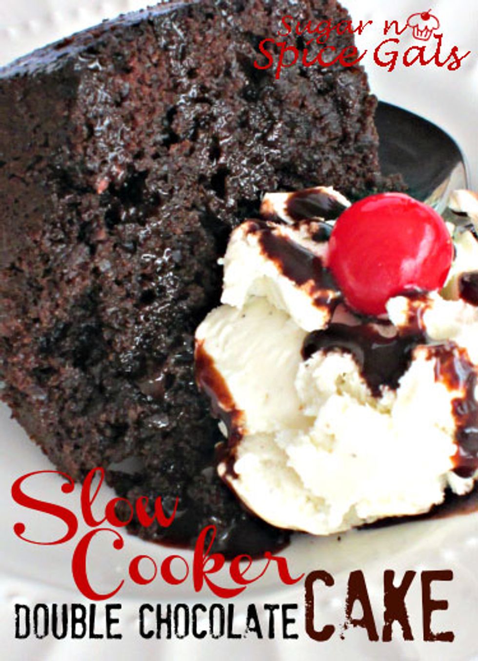 I found another love for my crock pot! Owning a couple of crock pots makes it so nice to not only have a main dish ready to eat when I get home from work, but I can also have a yummy dessert to go along with it! This chocolate cake is double delicious because it has twice the chocolate! More chocolate is always a good thing in my book! Combine this with some ice cream and I am one happy woman! -Robin